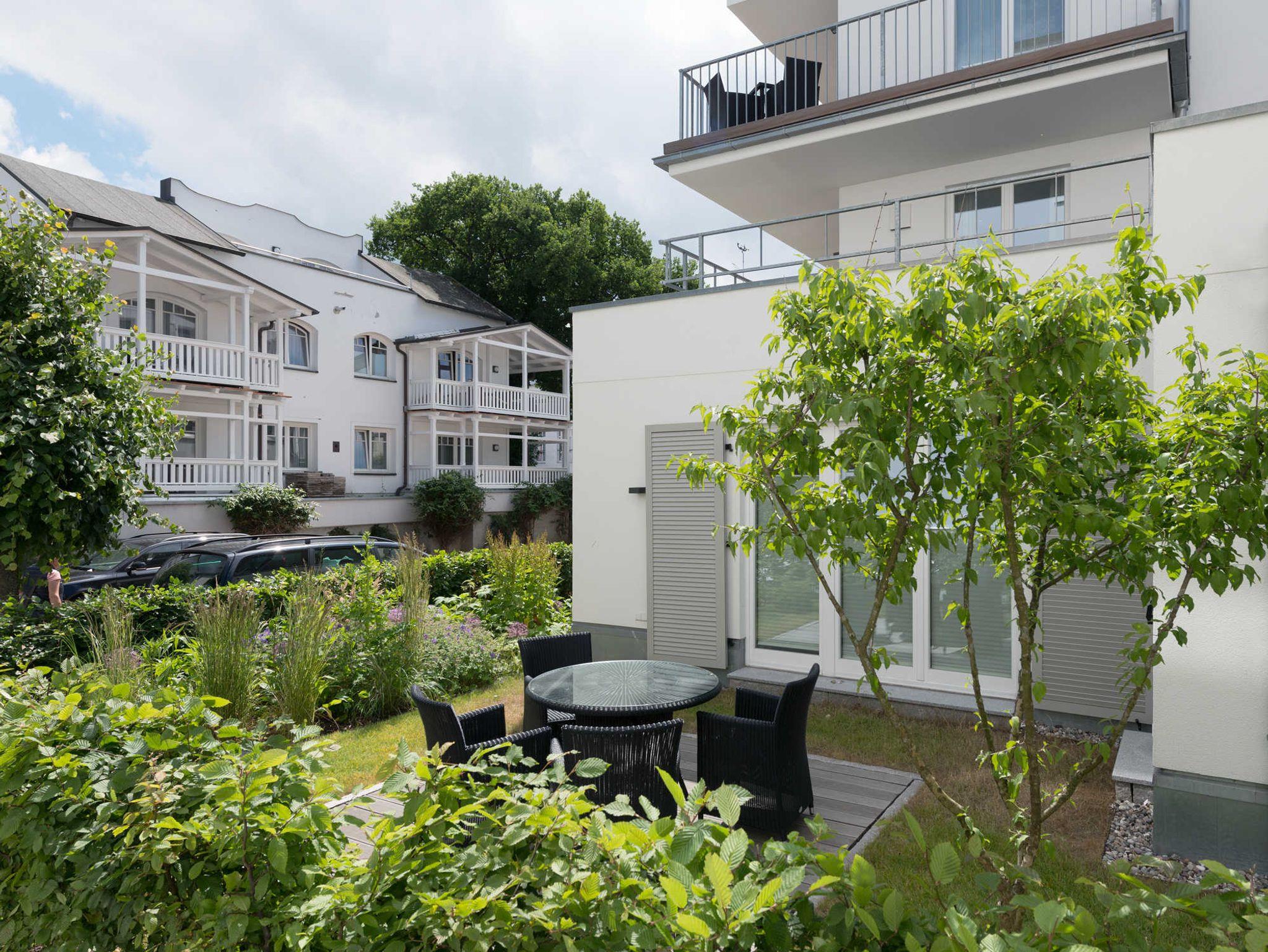 Moderne Ferienwohnung mit seitlichem Ostseeblick, Terrasse und direktem Strandzugang in Binz.
