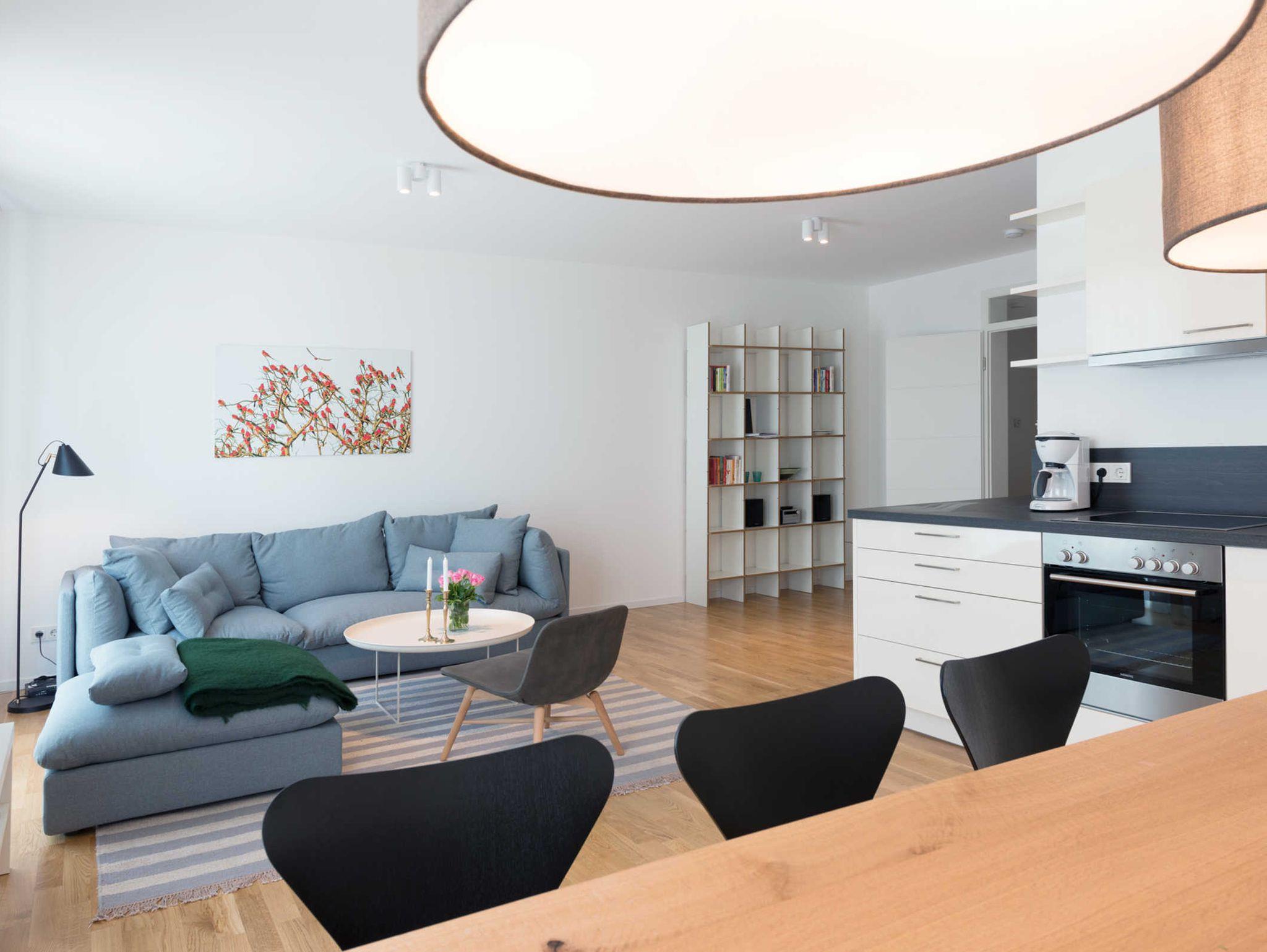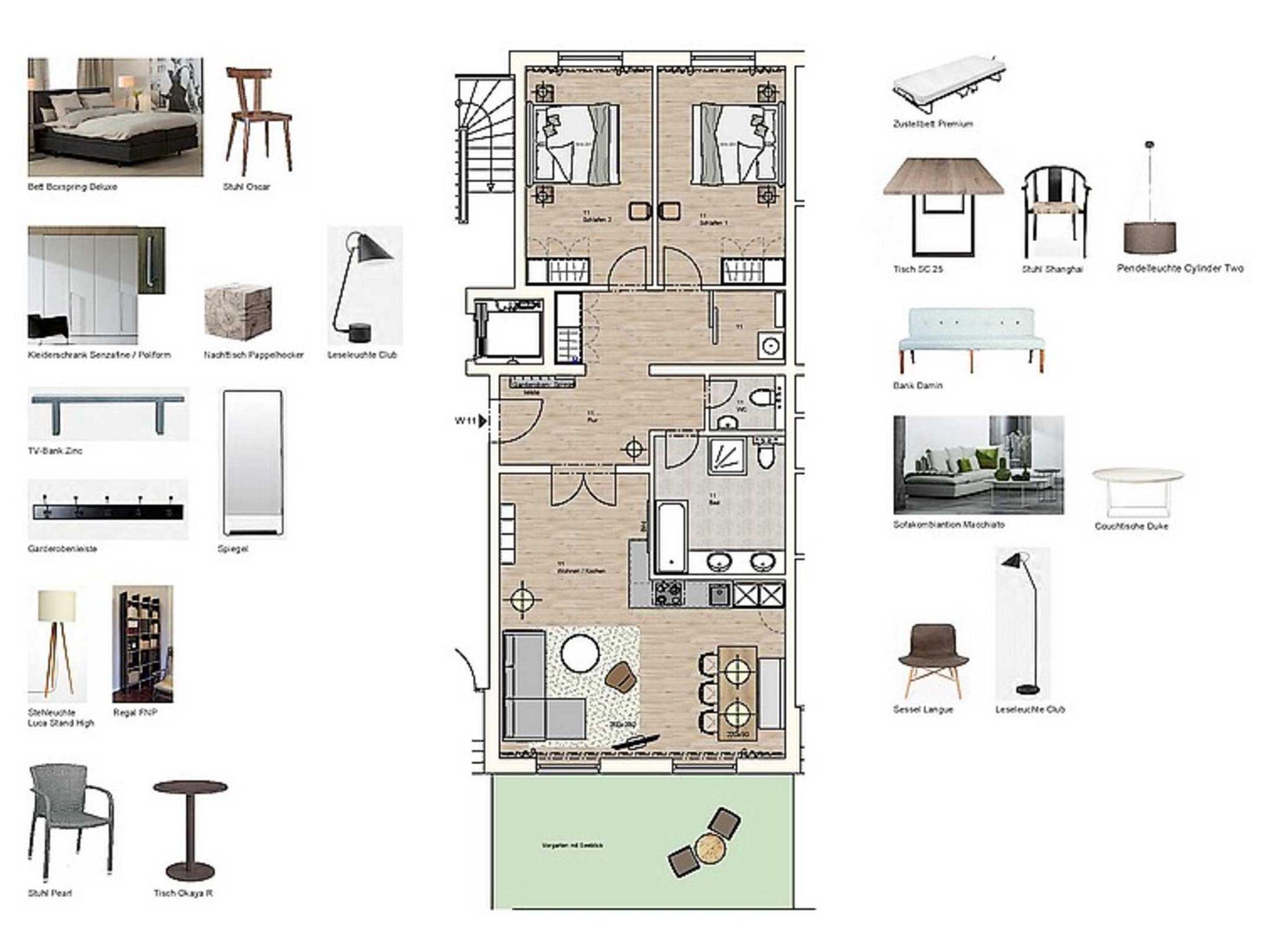 Die Wohnung Nr. 11 mit seitlichem Ostseeblick, kleinem Vorgarten und Terrasse liegt direkt am Strand im Erdgeschoss des Strandhauses Seeblick. Die Wohnung für bis zu sechs Personen und in einer Größe von 99 m² ist sehr hochwertig mit ausgewählten Design-Möbeln eingerichtet und verfügt über drei Zimmern: Ein großes Wohnzimmer mit 37 qm Wohnfläche mit großem Flachbild-TV und offener Küche (hochwertige Siemens-Geräte), zwei großzügige Schlafzimmer mit jeweils einem Doppelbett (180 cm breit), einem Badezimmer mit Badewanne, Dusche und WC und ein separates WC. Die Böden der Ferienwohnung sind aus hochwertigem Eichen-Parkett. Zwei Zustellbetten sowie ein Schlafsofa bieten die Möglichkeit der Aufbettung für mehr als vier Gäste. Aus dem Wohnzimmer erreicht man den kleinen Vorgarten mit schönen Gartenmöbeln und seitlichem Blick auf die Ostsee und den weißen Strand in Binz. Aus dem eigenen Garten und der Wohnung gelangen die Gäste direkt auf die Strandpromenade und an den Strand. Im wohnungseigenen Abstellraum im Eingangsbereich können Gegenstände verstaut auf zwei wohnungseigene Zustellbetten, ein Babybett und einen Hochstuhl zugegriffen werden.