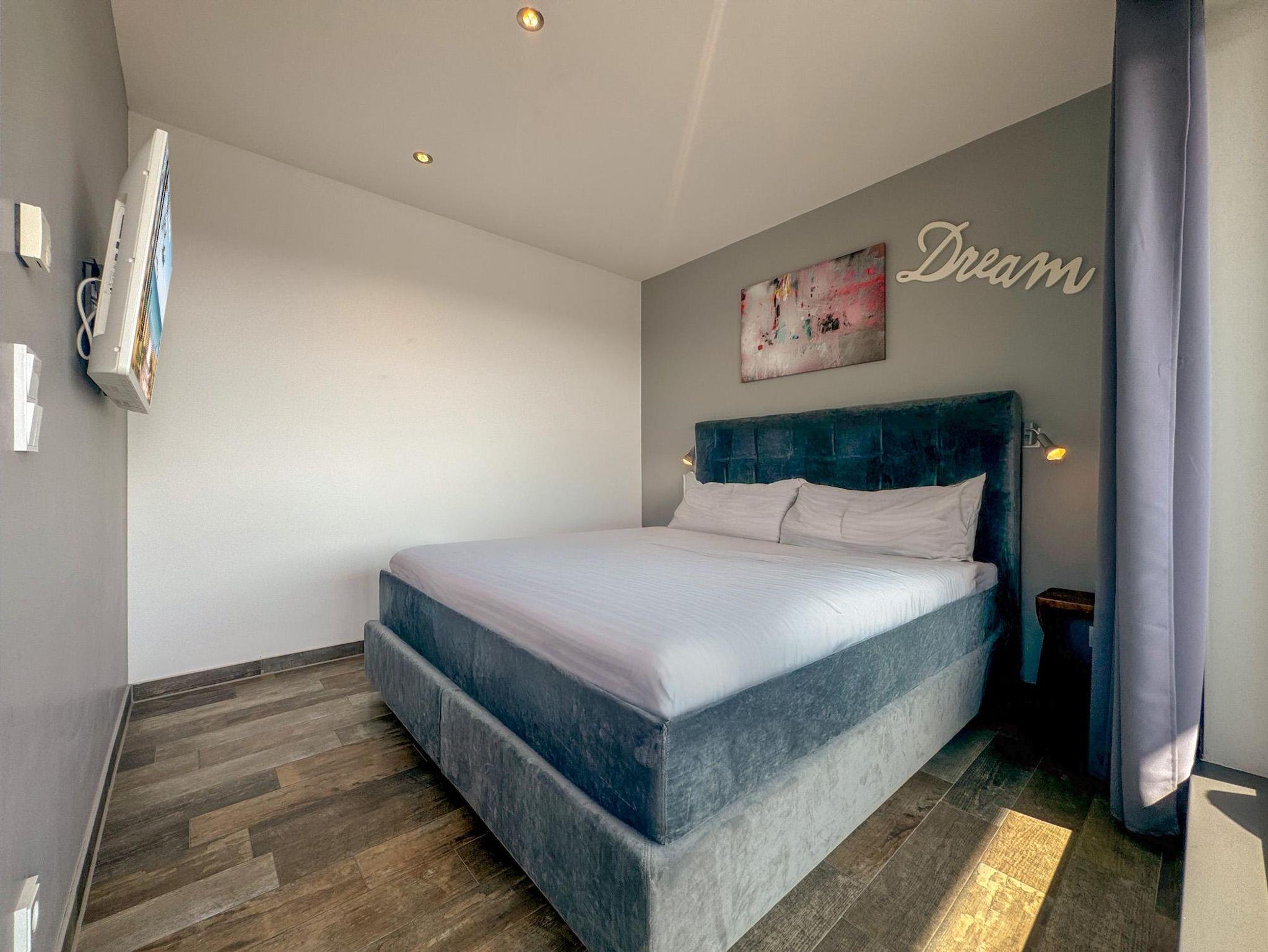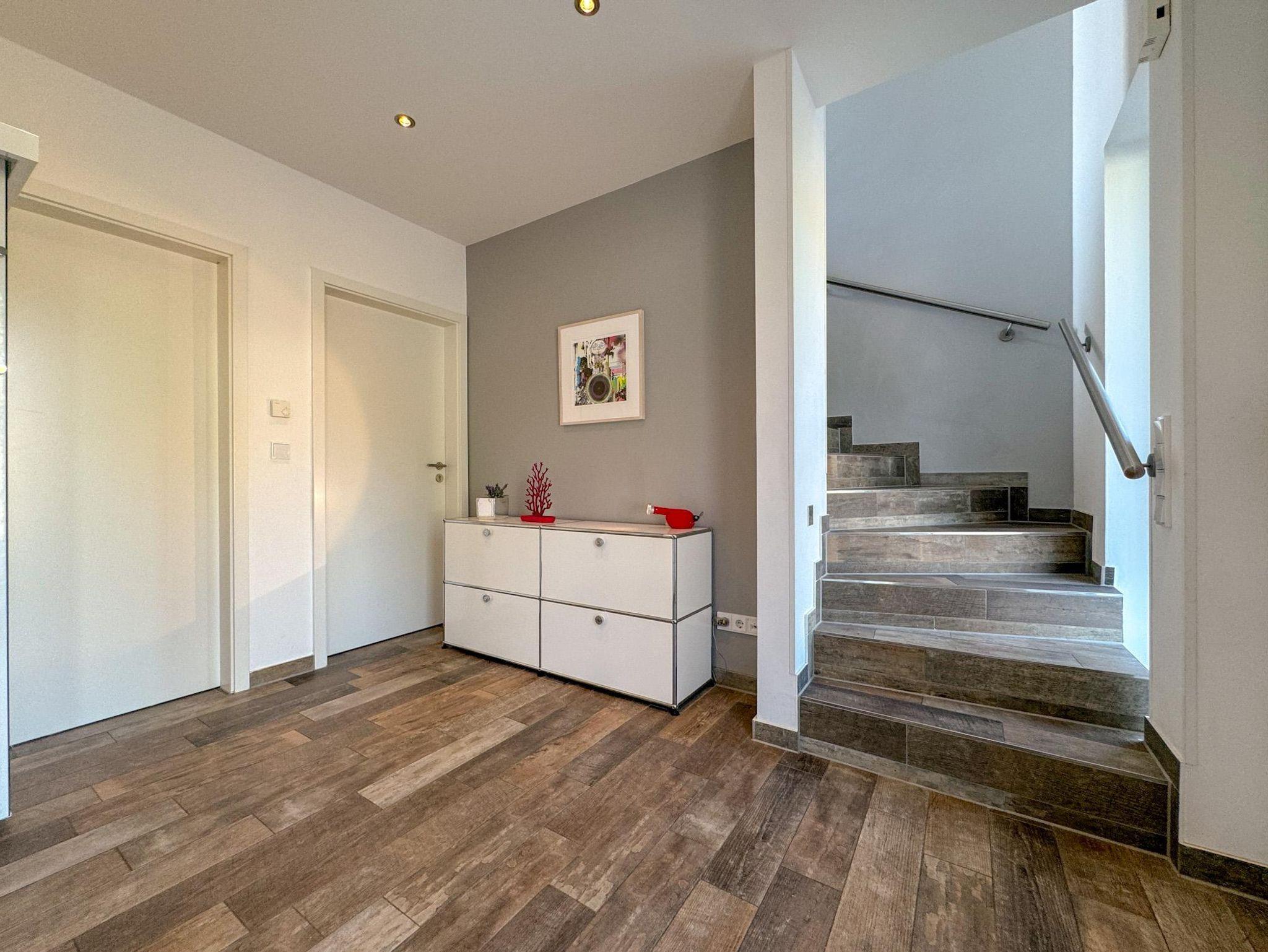 Die stilvolle Ferienwohnung verfügt über zwei geräumige Schlafzimmer, zwei elegante Bäder und eine private Sauna – perfekt für entspannte Stunden nach einem Tag am Strand oder einer Erkundungstour durch die Umgebung. Das Schlafzimmer im unteren Bereich bietet direkten Zugang zu einer schönen Terrasse, während das Schlafzimmer im Dachgeschoss einen direkten Zugang zur weitläufigen Dachterrasse hat.