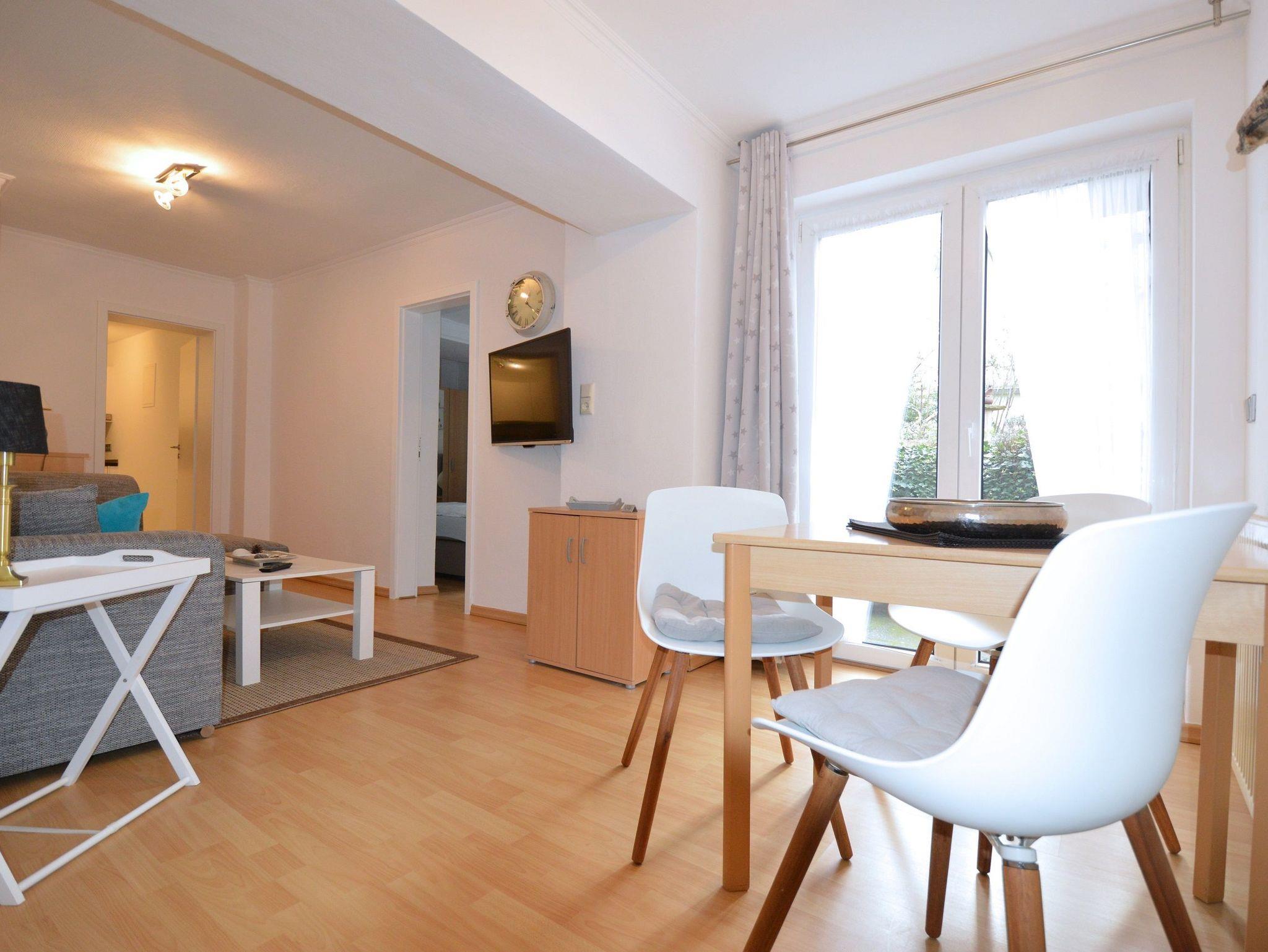 Das Apartment in Souterrain mit 45m² befindet sich in der Apartment-Villa Steinfurth, welche direkt am Meer liegt und bietet Platz für 2 Personen. Vom Wohnraum aus erreicht man eine Terrasse mit Gartenmöbeln. Der helle, große Wohnbereich gemütlich und modern möbliert und verfügt über Flatscreen-TV und Telefon. Die Küche ist separat und ist mit einem Essplatz ausgestattet. Die Küchenzeile enthält einen 4-Plattenkochfeld, Mikrowelle, Kühlschrank, Kaffeemaschine, Wasserkocher und Toaster. Das Schlafzimmer verfügt über ein Doppellbett mit einer Liegefläche von 180 x 200 cm. Ein Bad mit Badewanne, Waschtisch, WC und Haartrockner ist ebenfalls vorhanden.