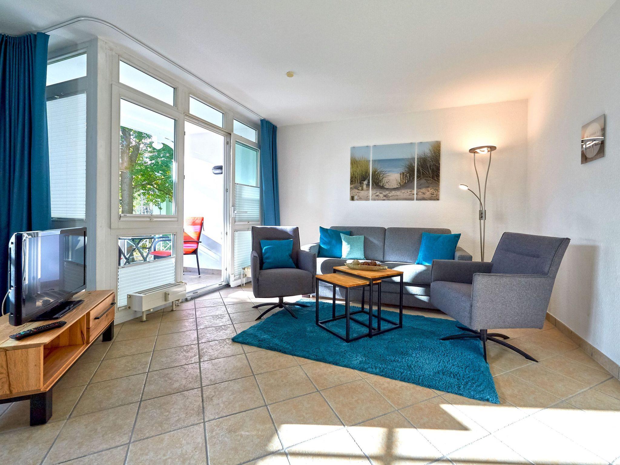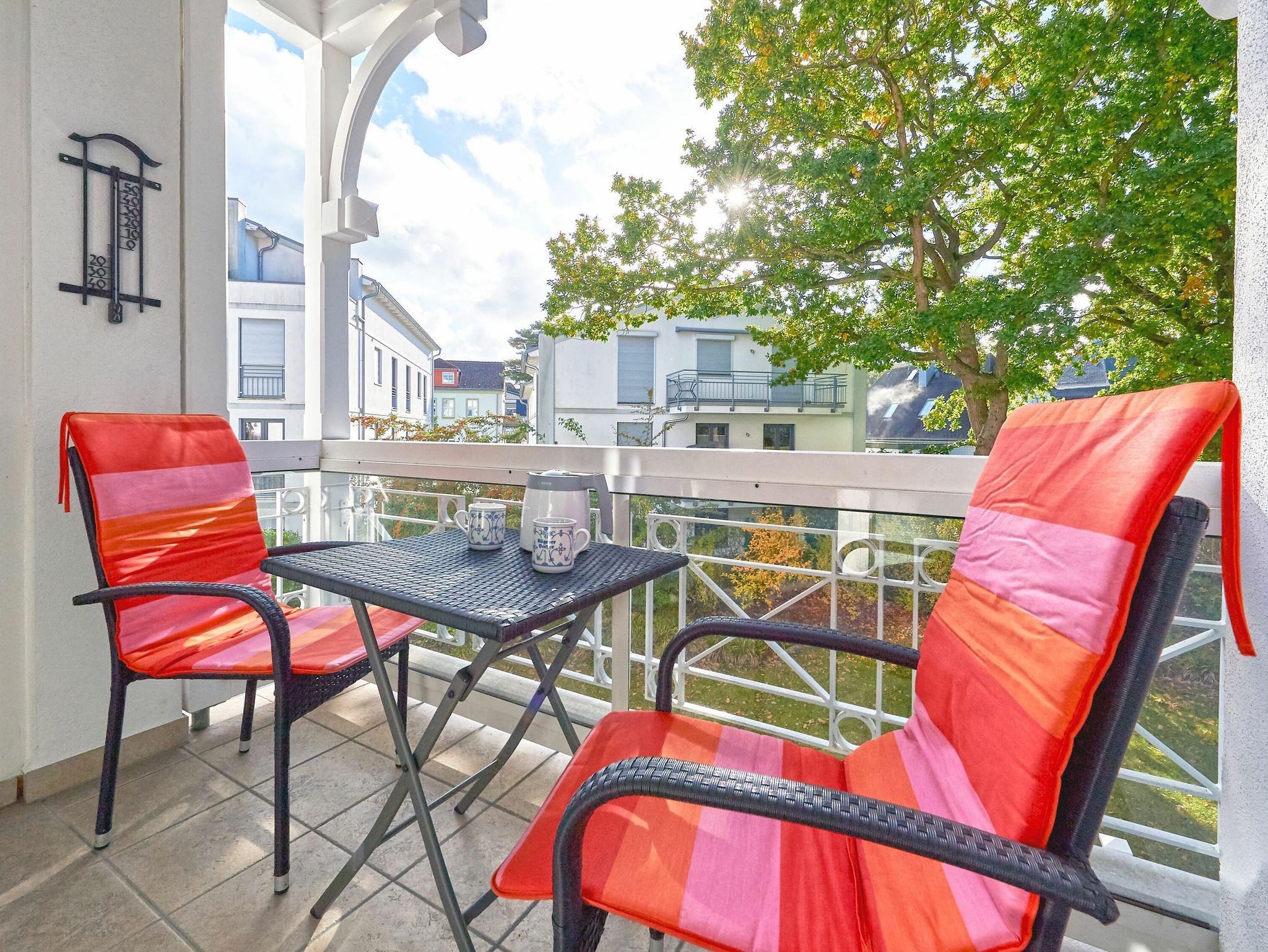 Komfortables 2-Raum-Appartement in Binz mit Balkon, moderner Küche, WLAN und Tiefgaragenstellplatz nahe Strand und Zentrum.
