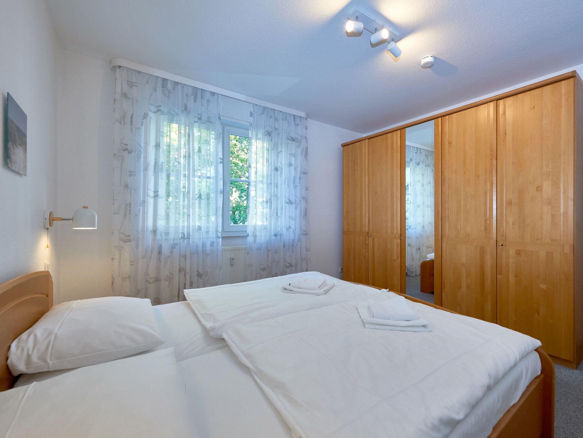 Die Couch im Wohnbereich lässt sich bei Bedarf mit wenigen Handgriffen in eine Schlafgelegenheit für zwei Personen verwandeln. Im separaten Schlafzimmer Ihres Urlaubsdomizils verspricht ein komfortables Doppelbett (1,80 x 2,00 m) angenehme Träume. Hier finden Sie auch einen großen Kleiderschrank für Ihre Urlaubsgarderobe.