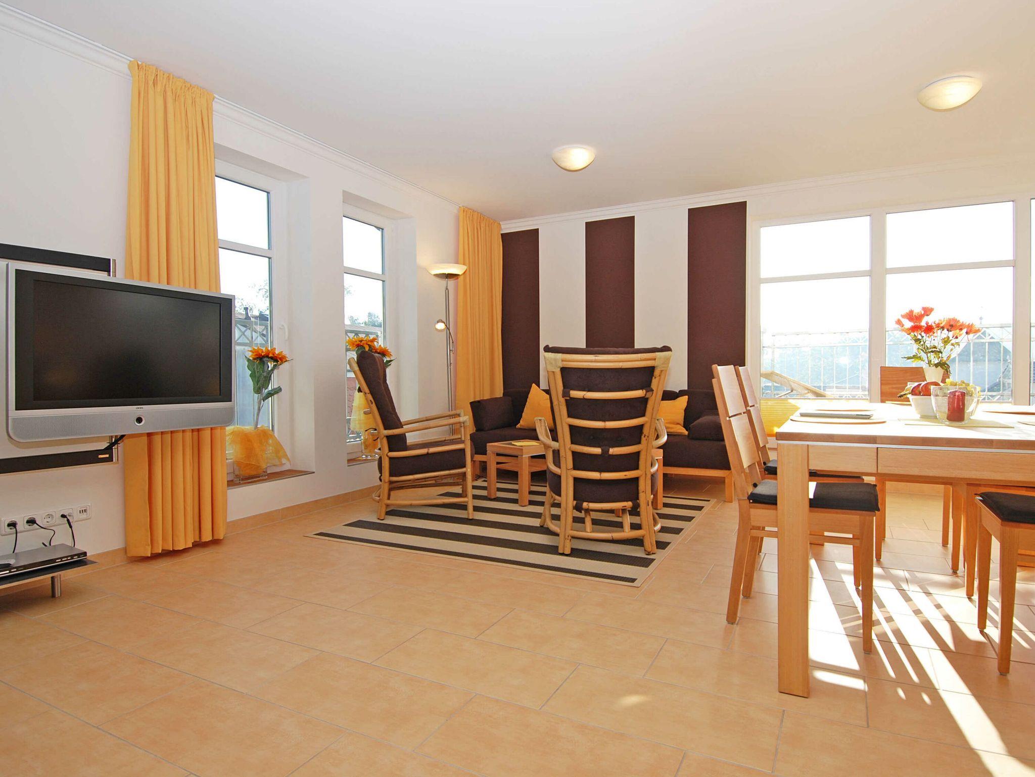 Komfortable Ferienwohnung mit zwei Balkonen und moderner Ausstattung in Binz, ideal für erholsame Tage an der Ostsee.