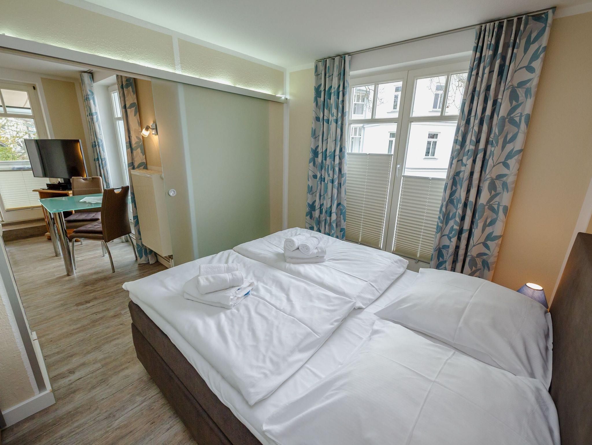 Diese rund 45 qm große 2-Raum-Appartement mit seinem lichtdurchfluteten Wintergarten und dem schönen Namen Ostseeschwalbe erwartet Sie im 1. Obergeschoss der Villa Saxonia, nur wenige Schritte vom herrlichen Binzer Sandstrand entfernt.