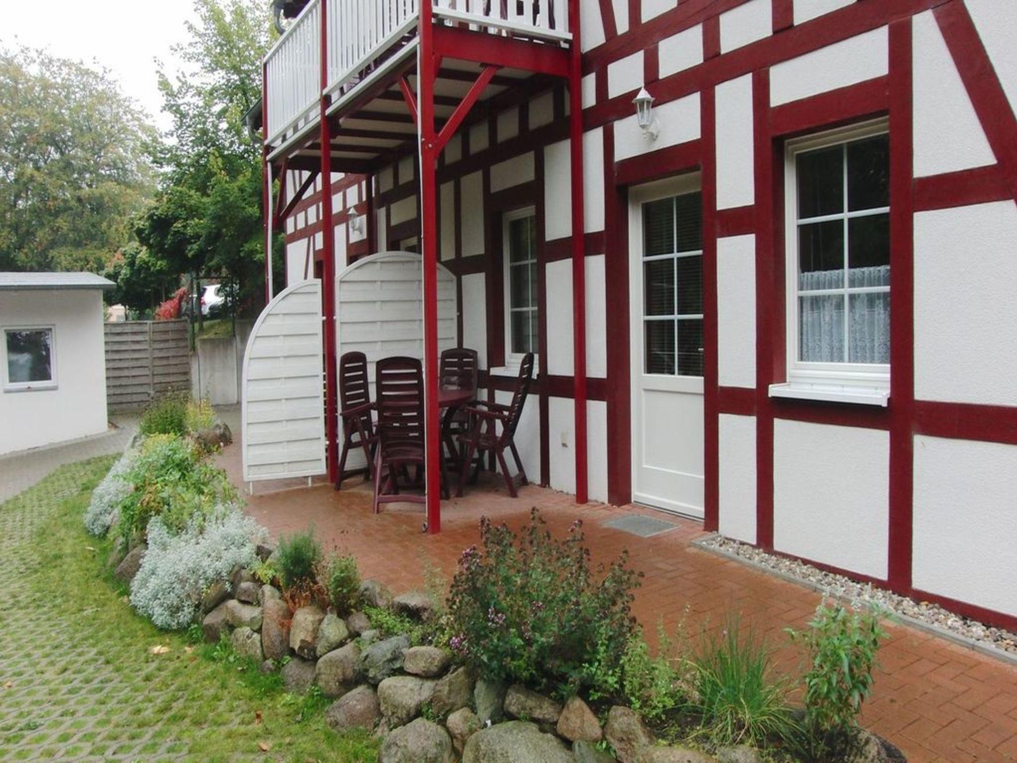 1 Ferienwohnung in der 1. Etage mit offenen Balkon. 47 m² 2 Schlafz., 1 Wohnküche, Bad.