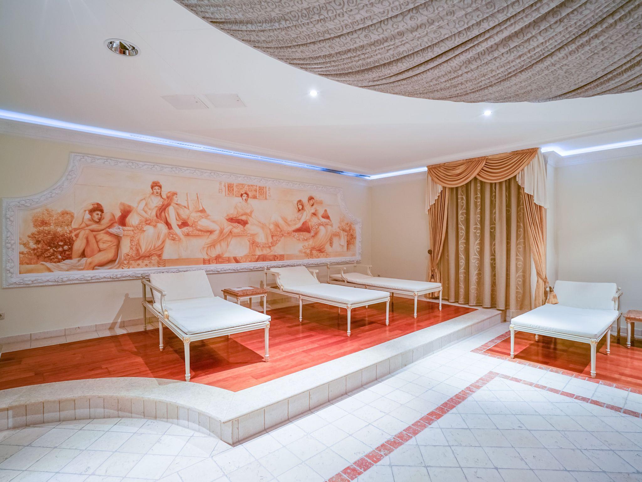 Neue luxuriöse Badewelt mit Salzwasser Hallenbad (18x6m), Dampfsaunen, Russische Sauna, Kräuterbad, Ametystenbad, Ruheräume, Wärmeliegen, Fußsprudelbecken, Kneippbecken, Kieselgang, Eisbrunnen, Schneckenduschen.