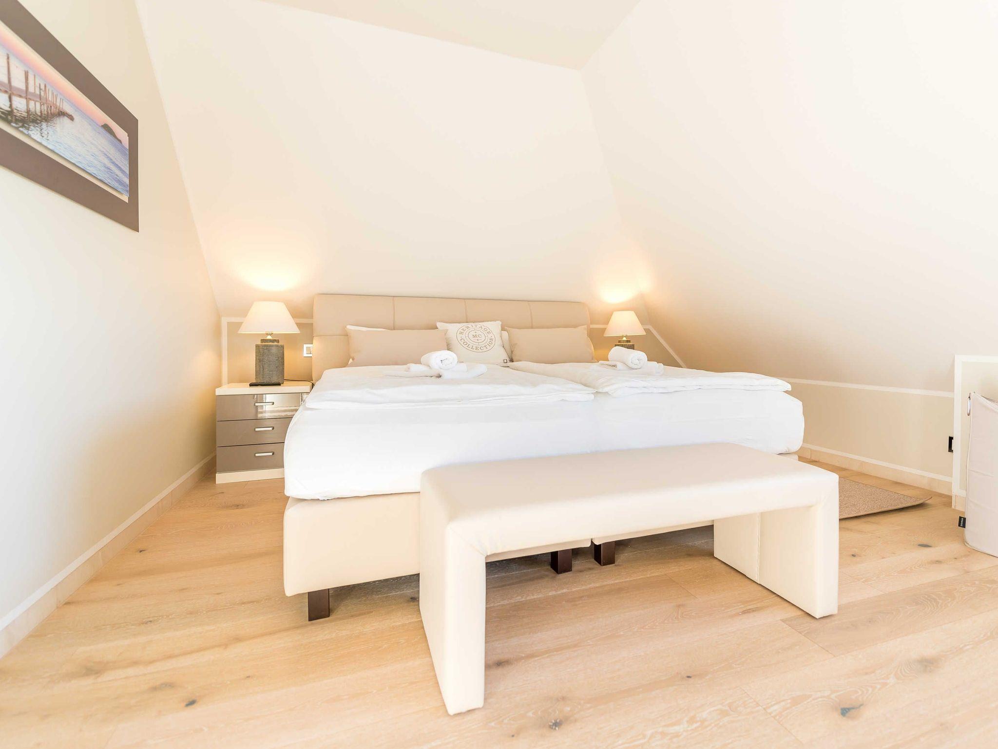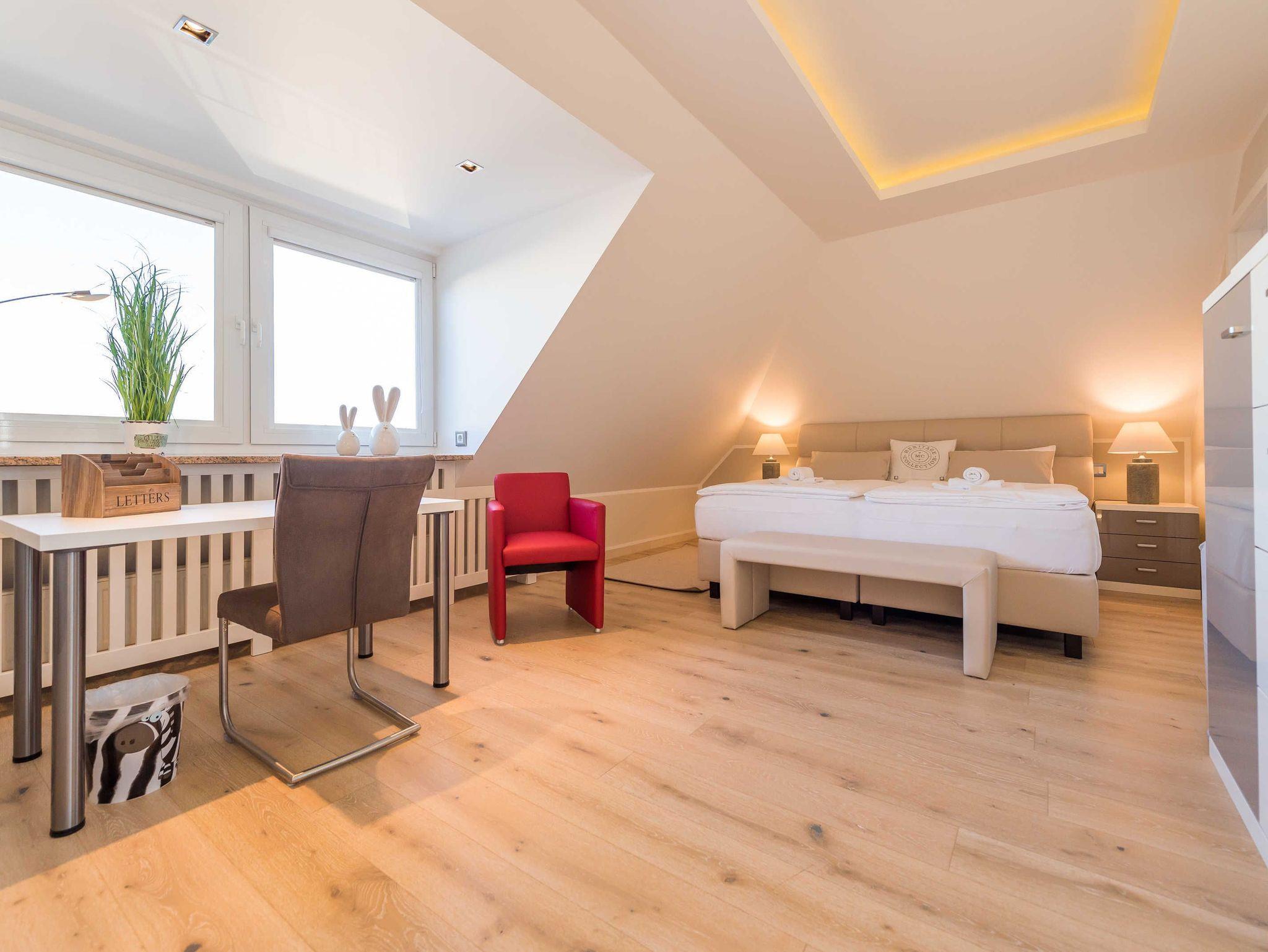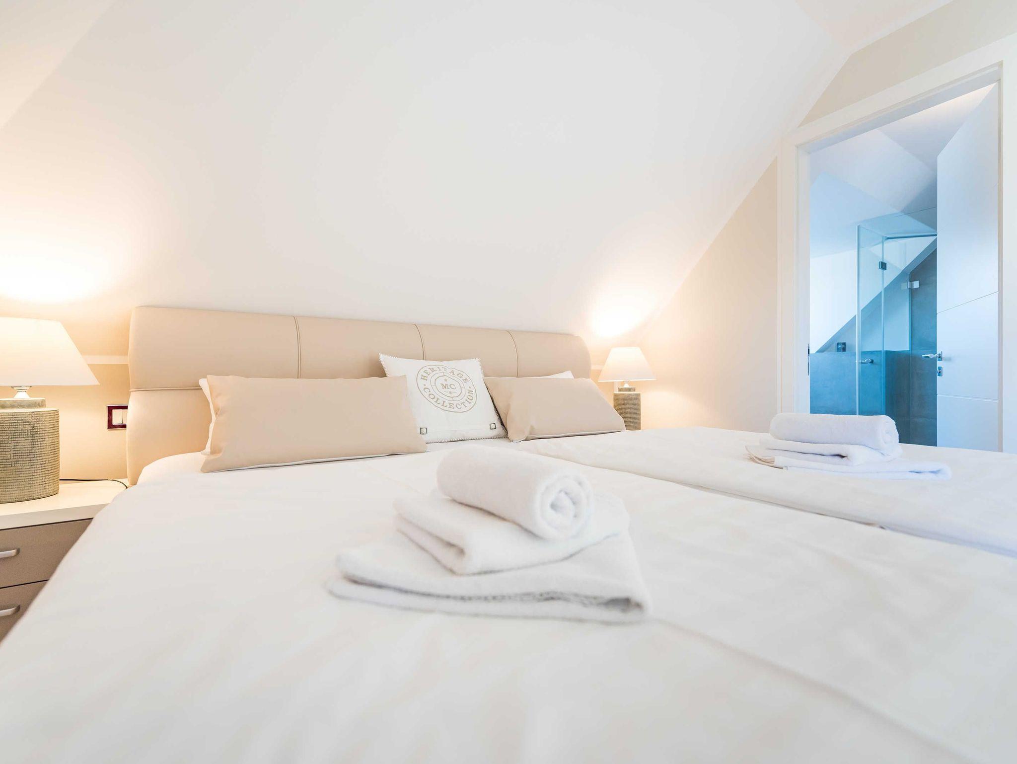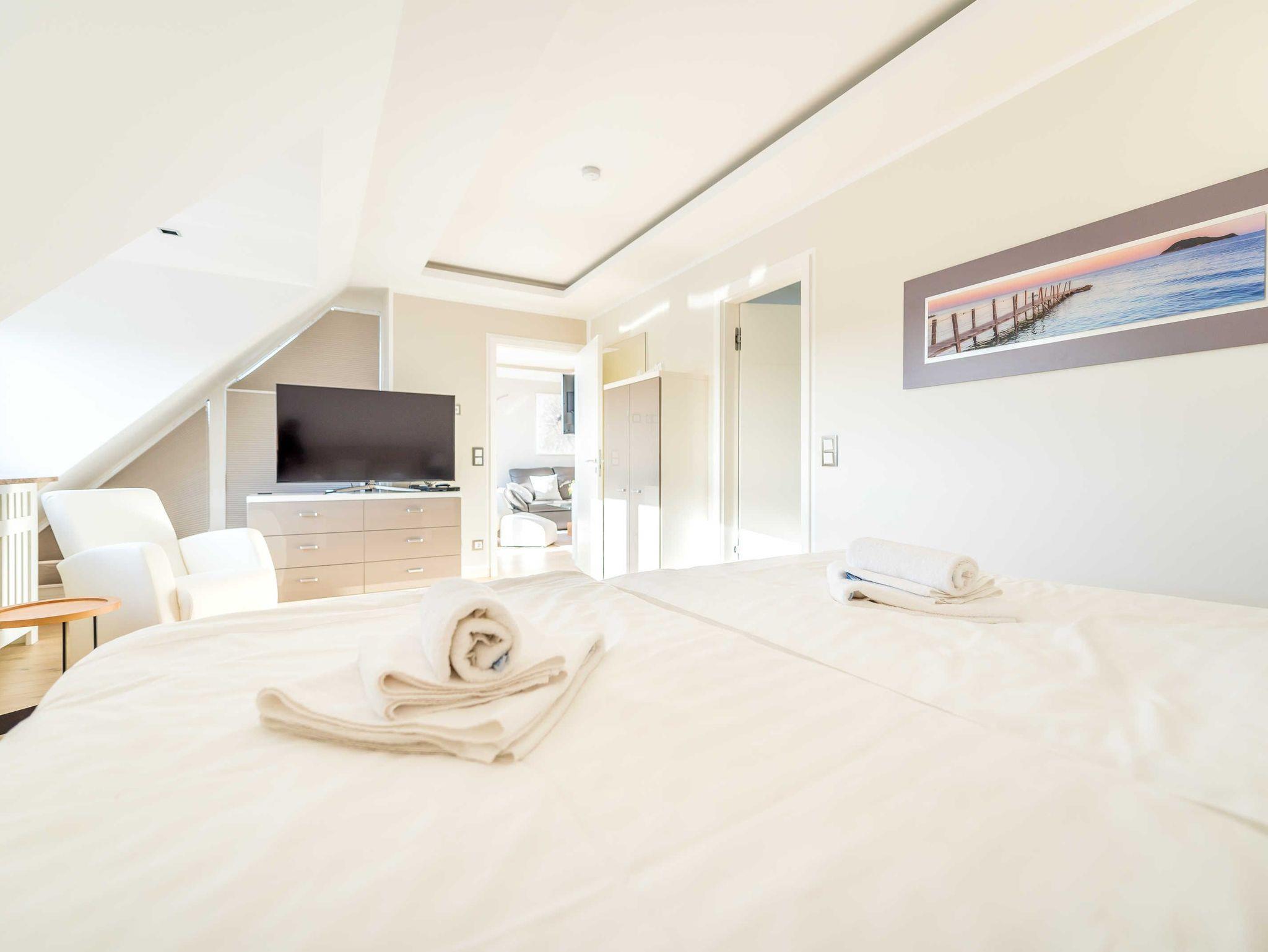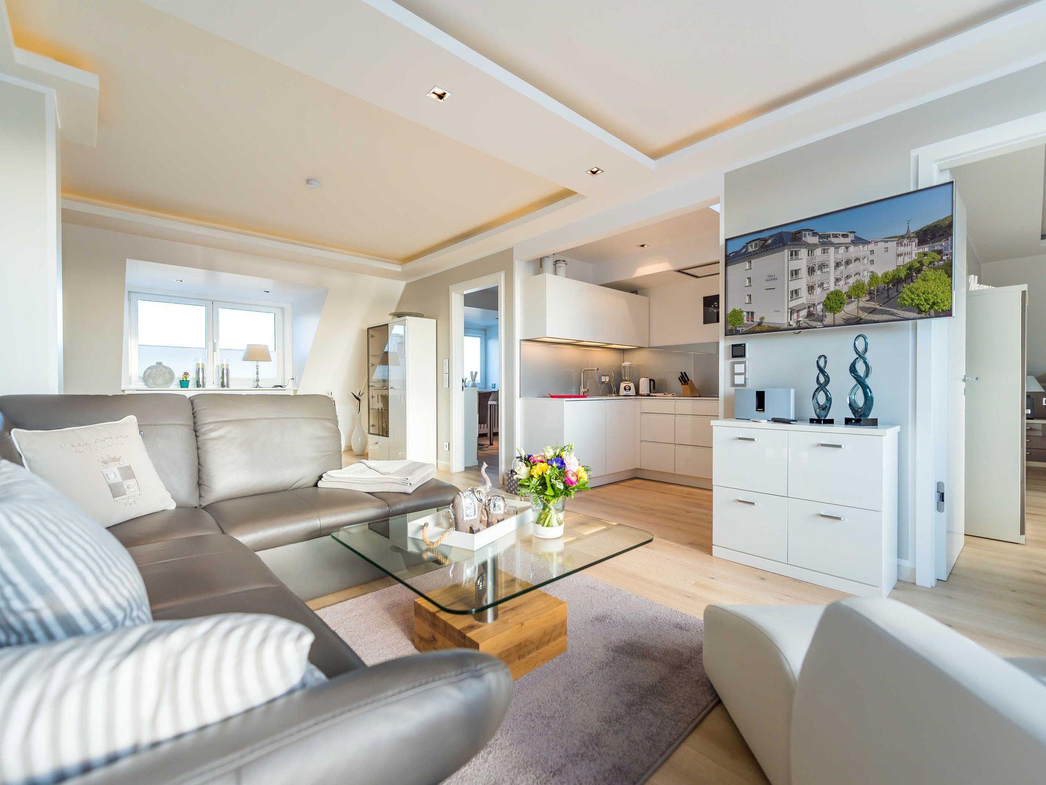 Die Villa Allegra in Binz bietet ein modernes Penthouse mit Dachterrasse und Sauna, nur 450 m vom Strand entfernt.