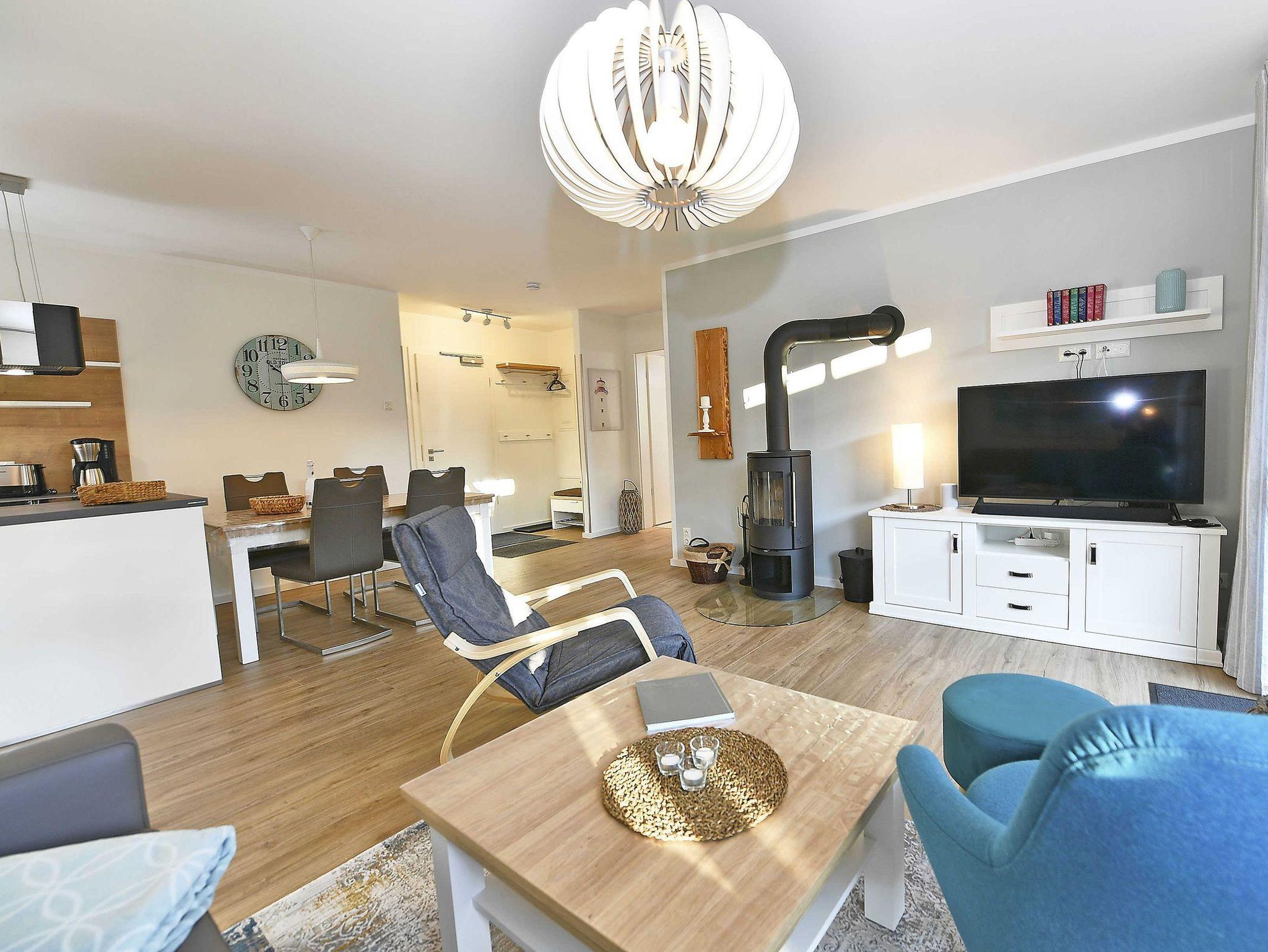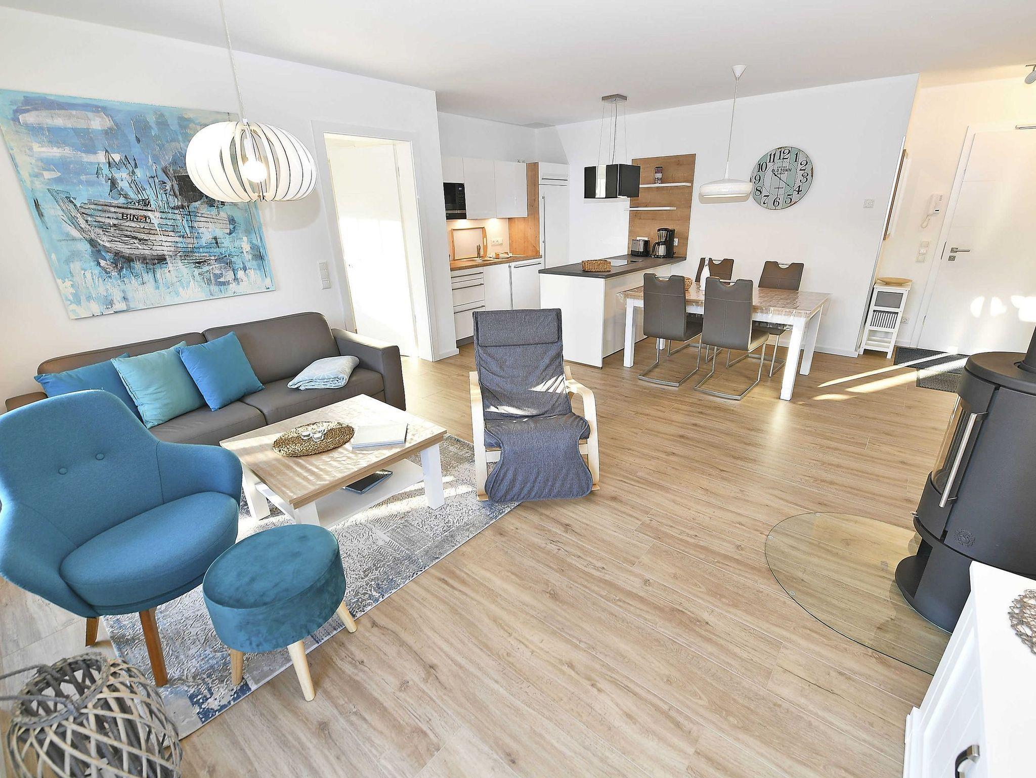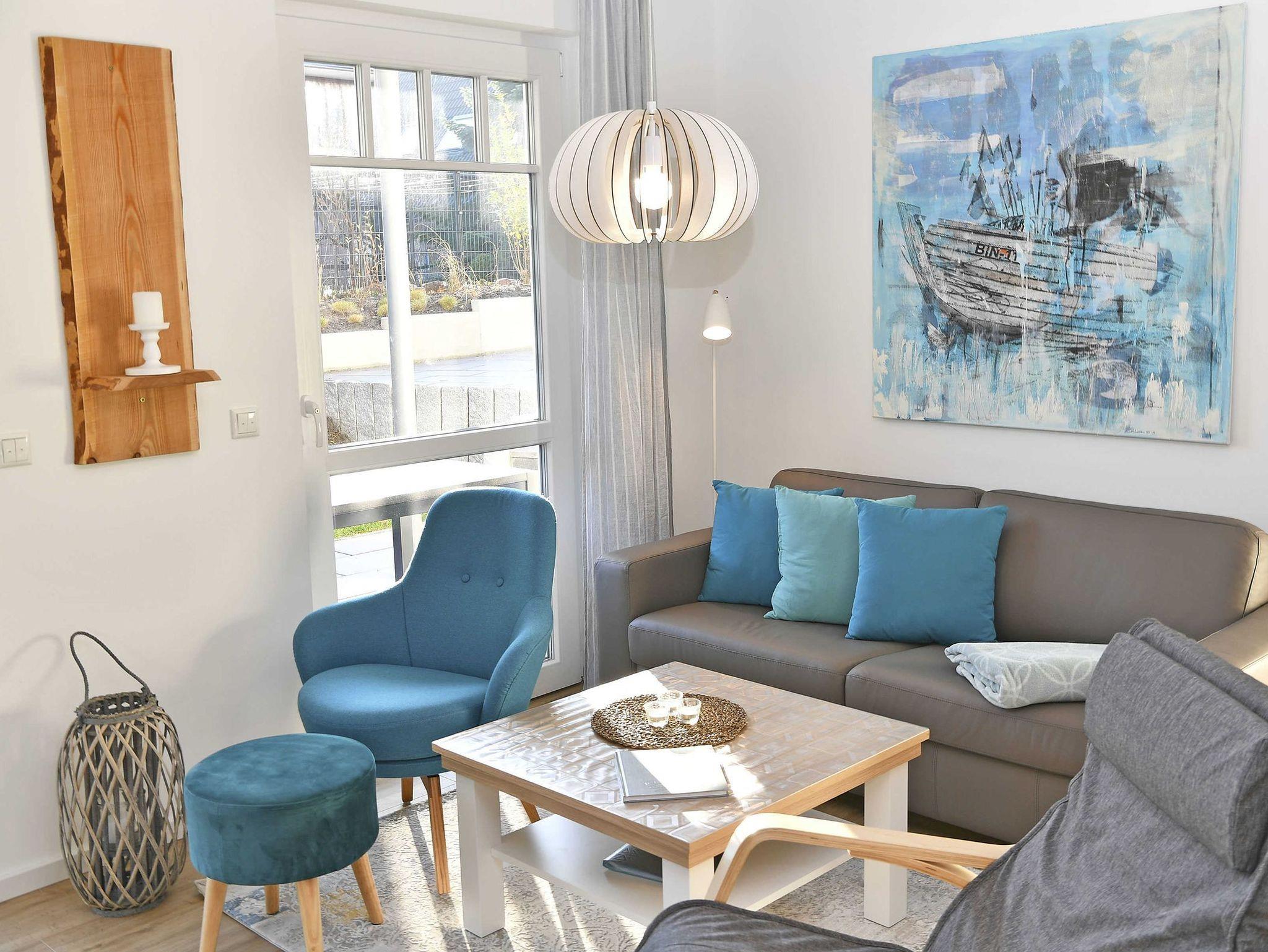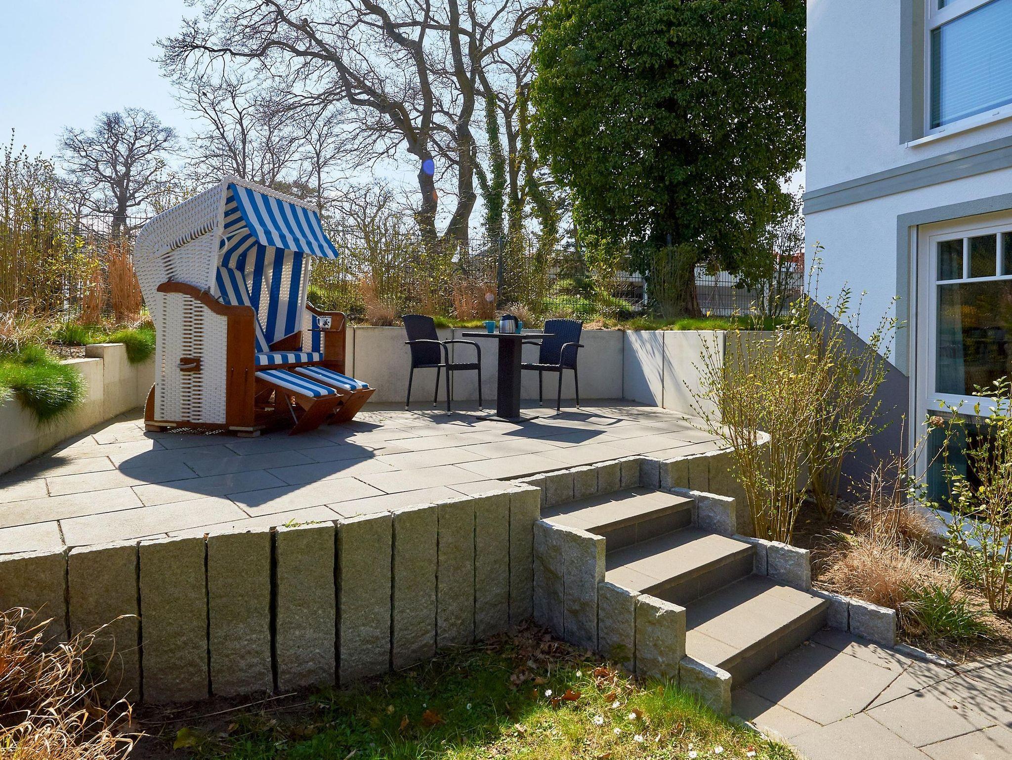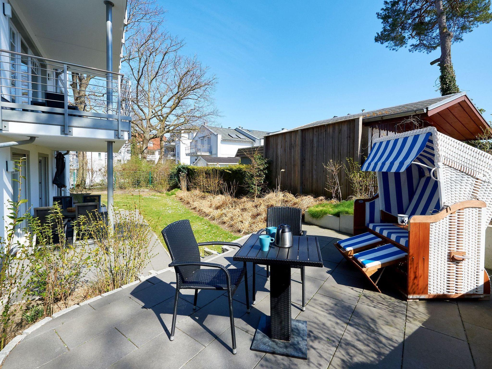 Luxuriöse Erdgeschosswohnung in Binz mit Terrasse, Kamin und Strandkorb, nahe Strand und Zentrum.