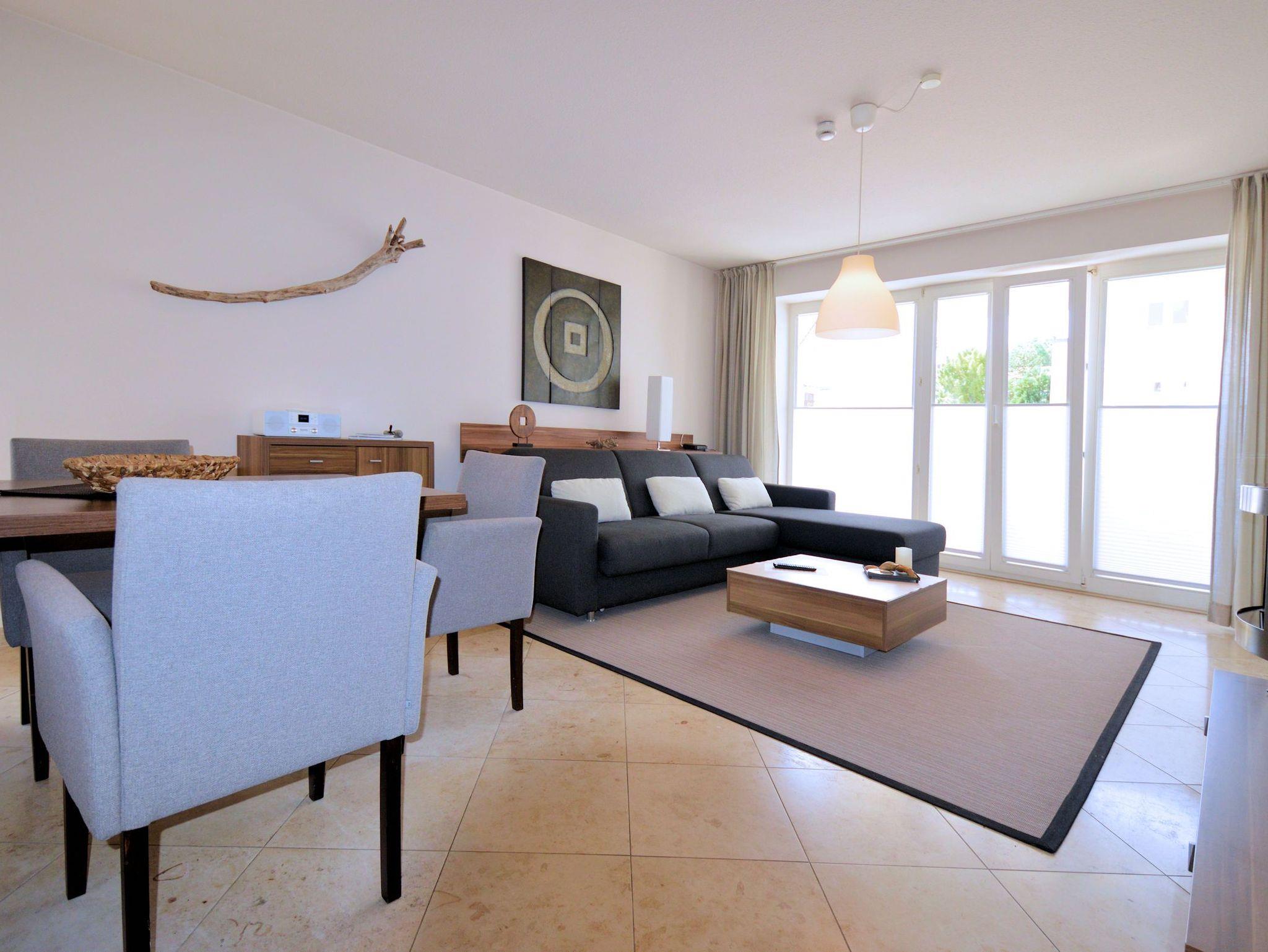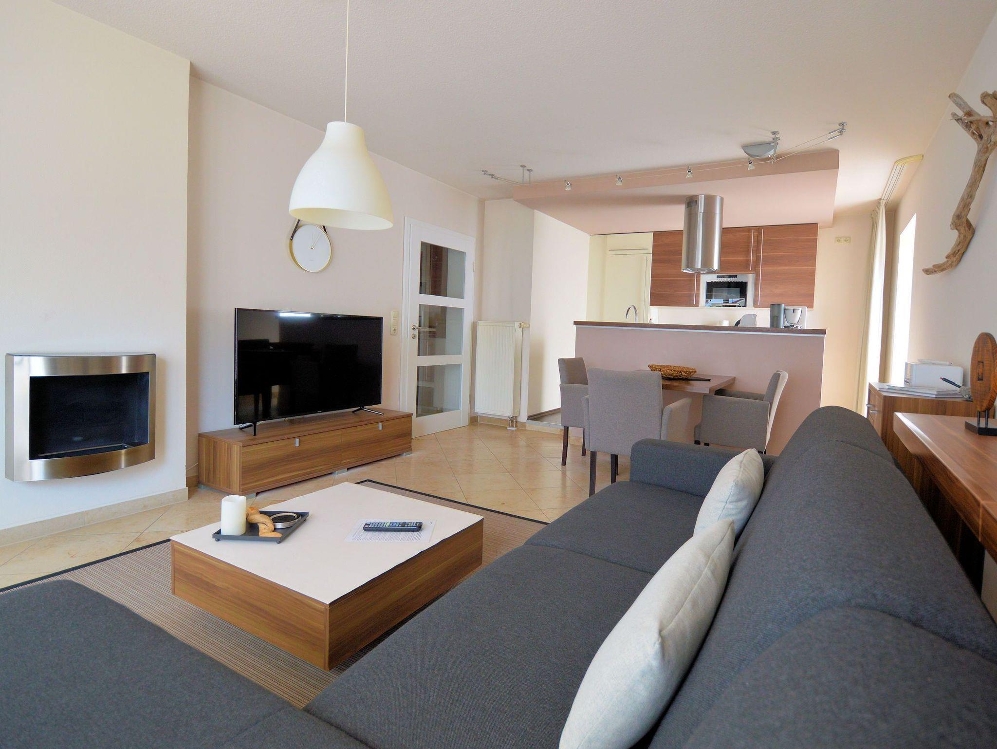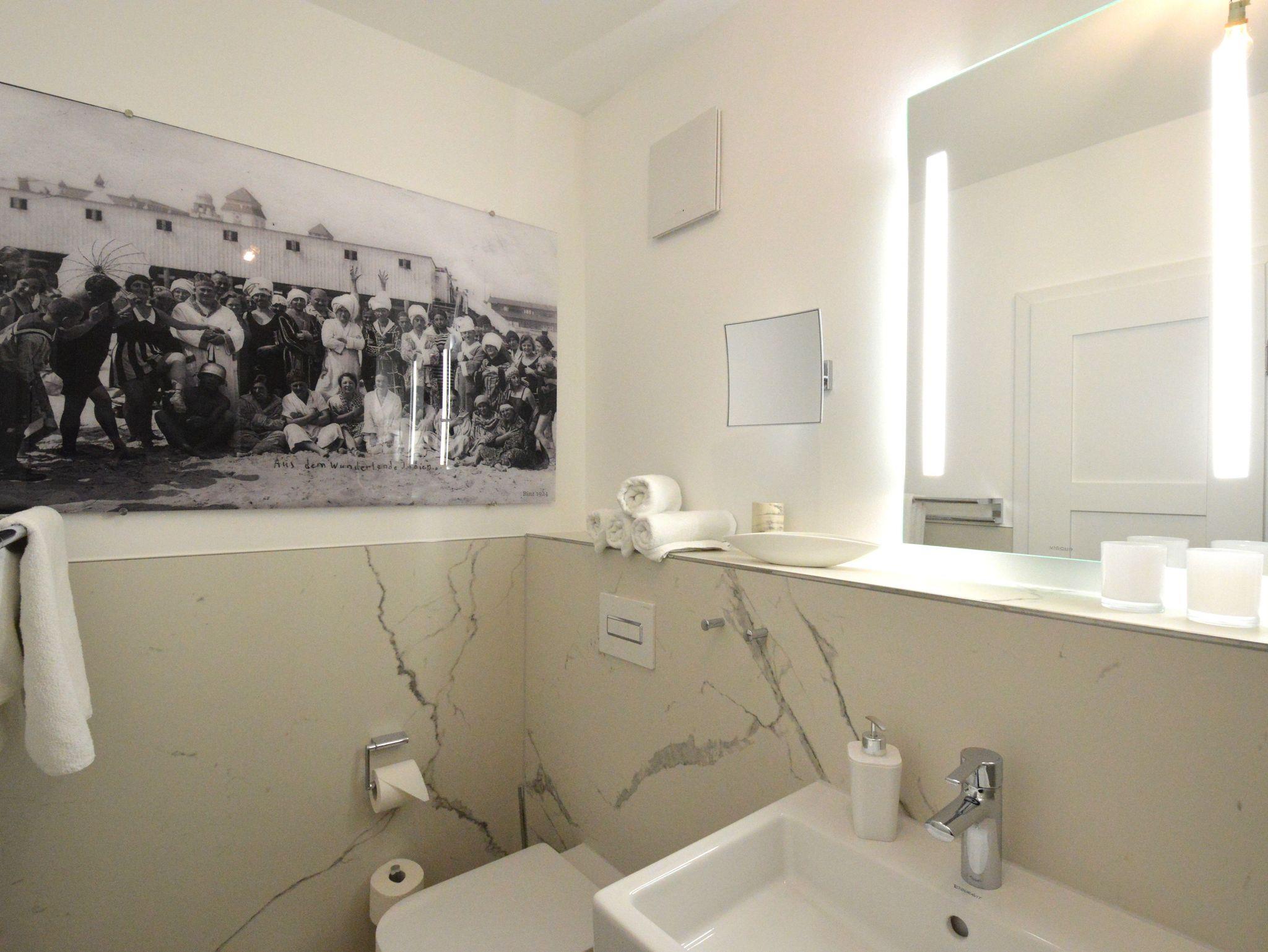 Modernes Strandapartment in Binz mit Balkon, Kamin und WLAN, nur 50 Meter vom Strand entfernt.