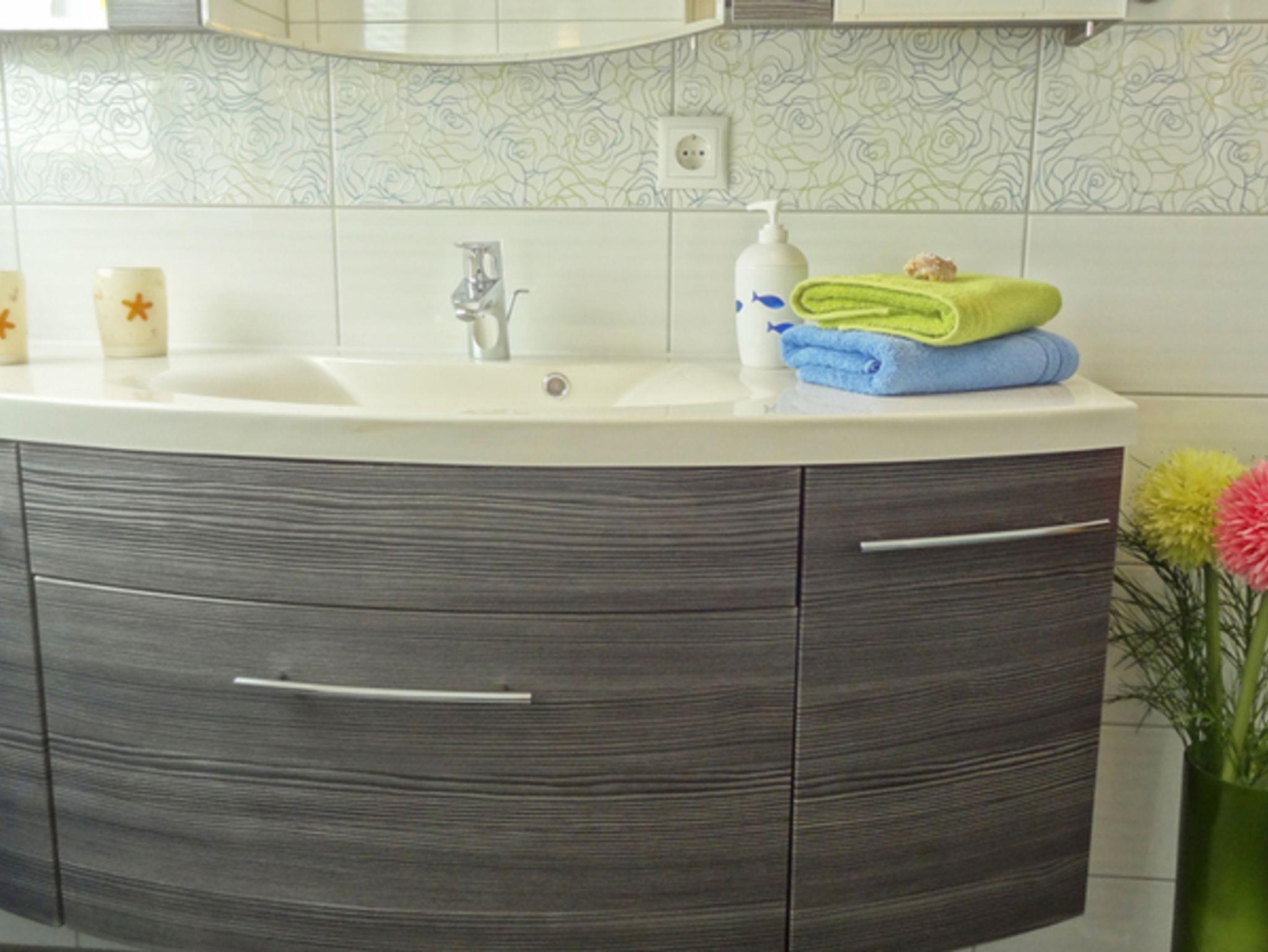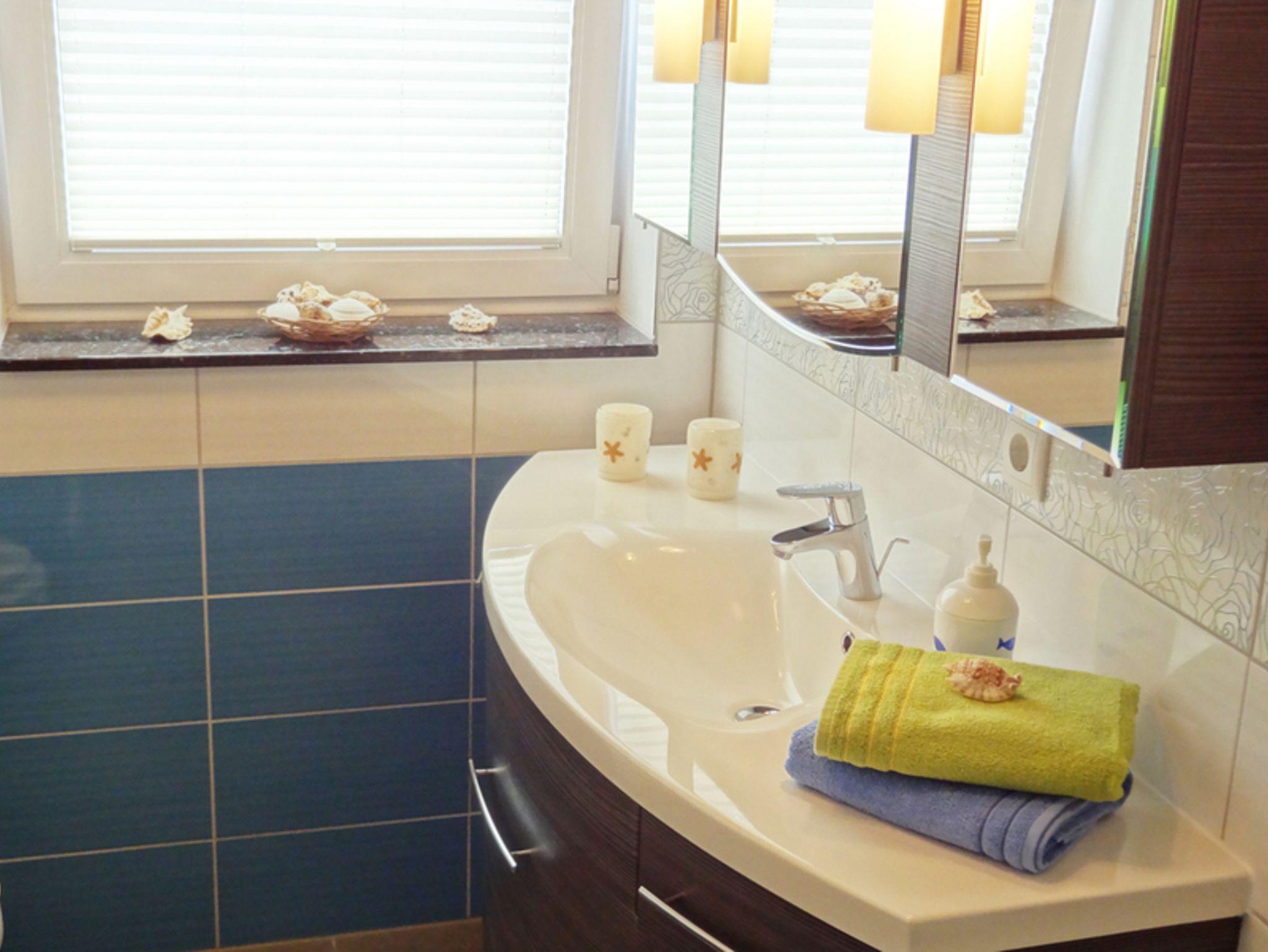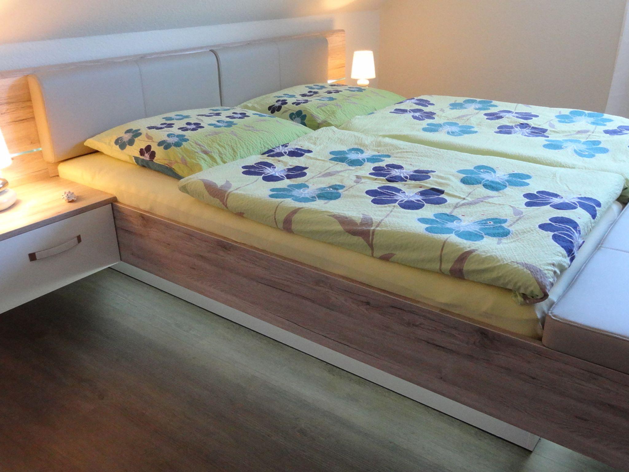 Modern und hell eingerichtete 3 Sterne Ferienwohnung im OG eines Einfamilienhauses in ruhiger Lage. Wohnzimmer mit Schlafcouch für 1 weitere Persone und gut ausgestattete moderne Küchenzeile mit separatem Essbereich, 2 Schlafzimmer mit extralangem Doppelbett (180x200/220) für je 2 Personen und hochwertig ausgestattetes Bad mit Glasdusche