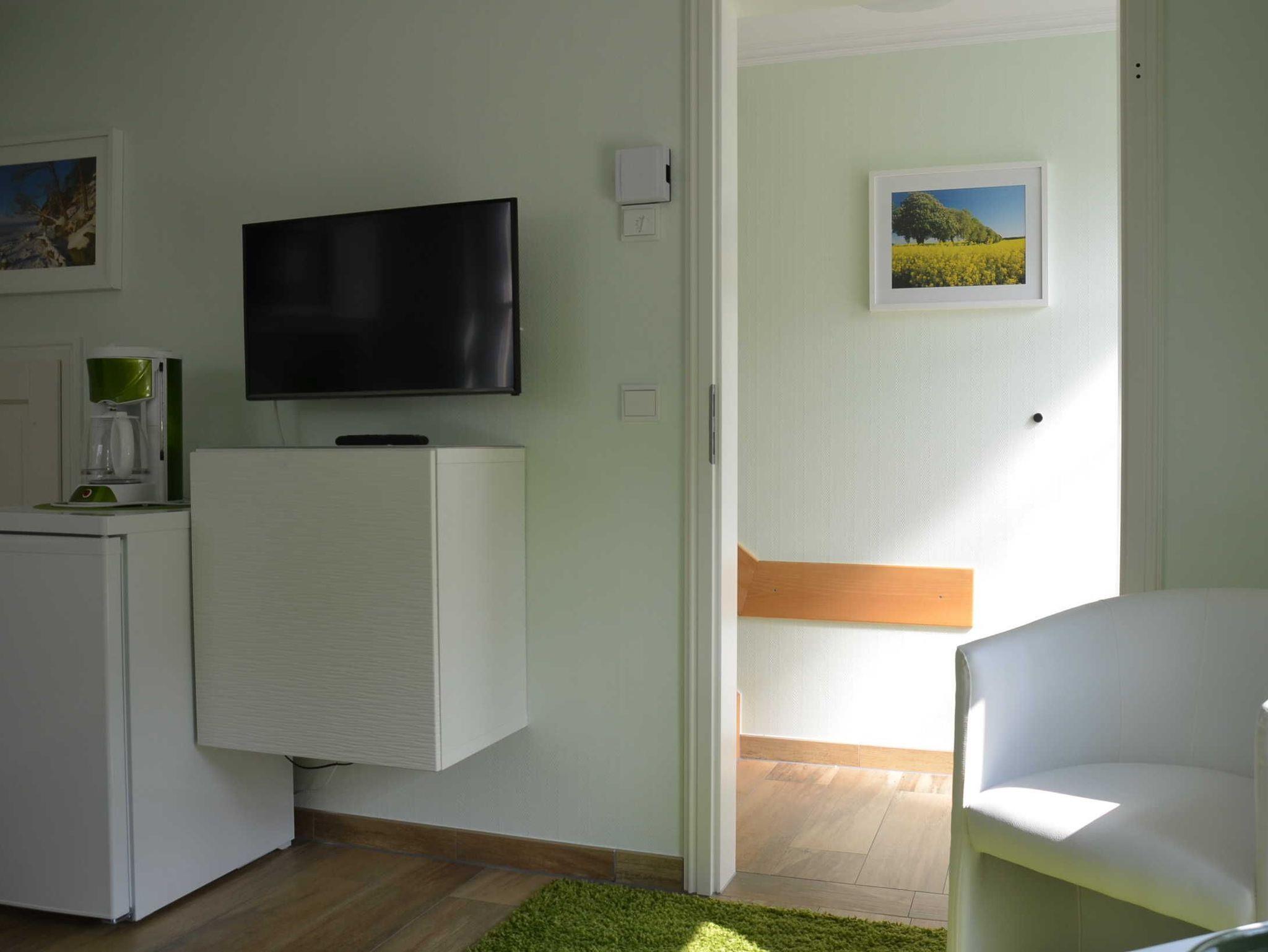 Die Unterhaltungselektronik des Wohnküche besteht aus einem Smart-TV-Fernseher optional mit Blu-Ray/DVD-Spieler. Über W-LAN können Sie kostenfrei den ausschließlich für diese Ferienwohnung eingerichteten Internetanschluss nutzen, auch zusammen mit dem W-LAN-fähigen Fernsehgerät.