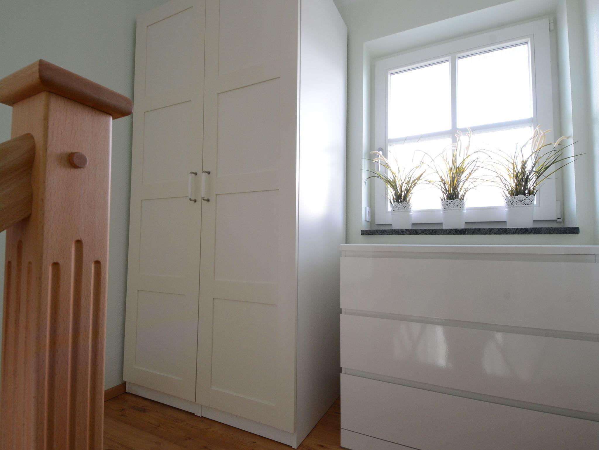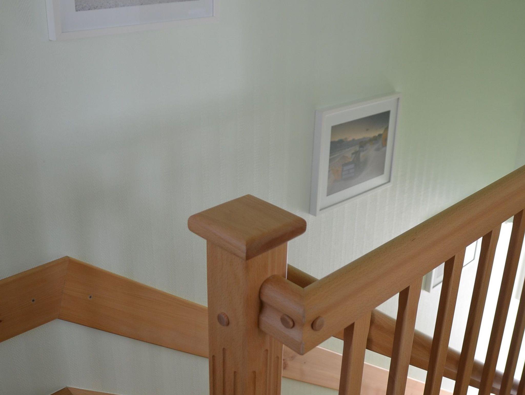 Die Wohnungen Nr. 1 und Nr. 2 sind insofern behindertenfreundlich ausgestattet, als dass die Treppe zum Obergeschoss geradeausläufig, 1,25m breit, mit sehr bequemen Stufen und sicherem Handlauf ausgestattet ist. Die Eingangstüren und Innentüren dieser Ferienwohnungen sind 1 Meter breit. Die Duschwannen sind bodengleich und mindestens 90cm x 90cm groß.