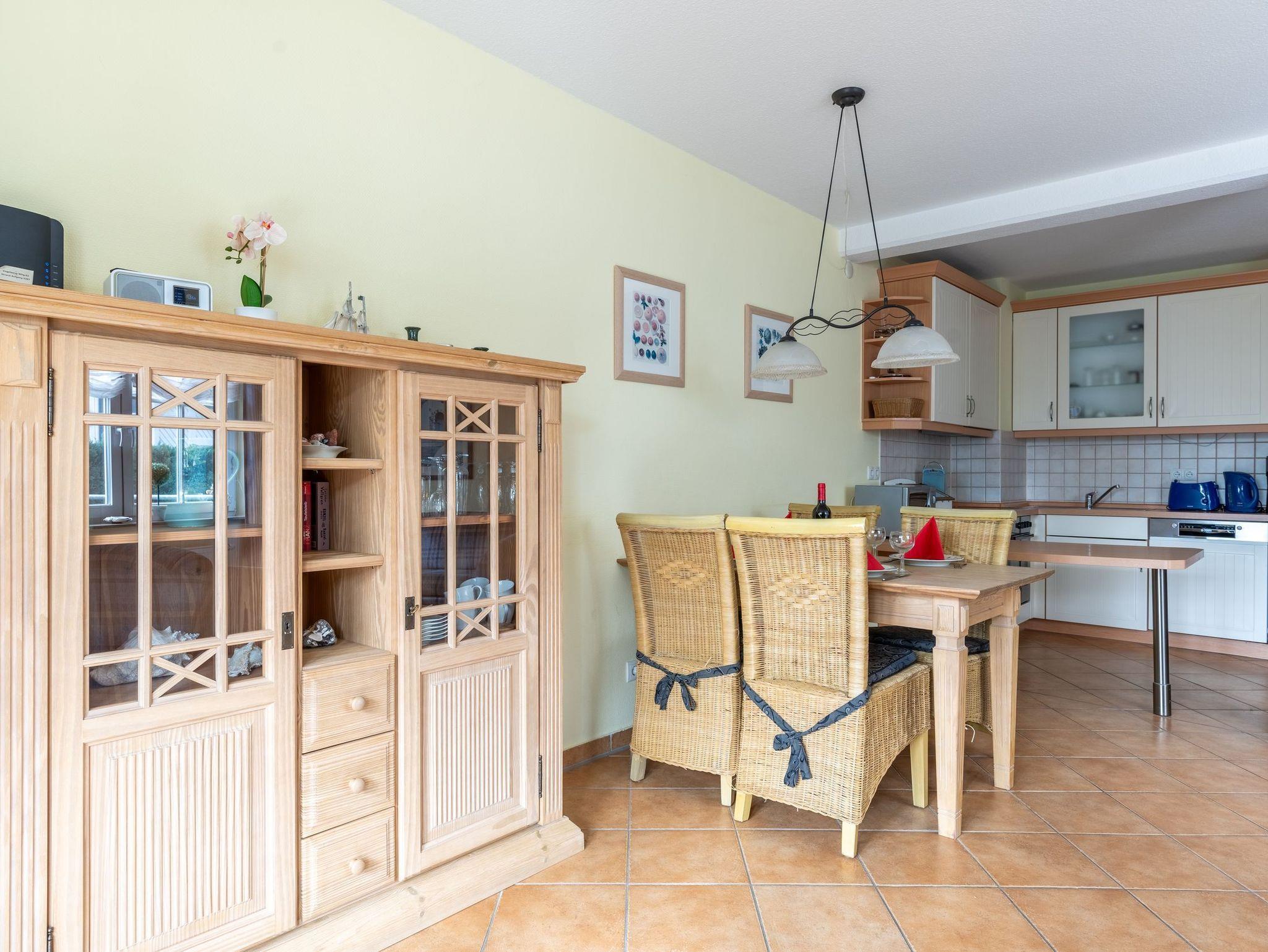 Im großzügigen gemütlichem Wohnbereich mit TV Gerät können Sie nach einem schönen Urlaubstag entspannen . In diesem ist die Küchenzeile sowie der Essbereich integriert. Die Küchezeile verfügt über einen Herd mit Ceranfeld und Backofen, Geschirrspüler, Kaffeemaschine, Mikrowelle , Wasserkocher, Toaster und vielem mehr.