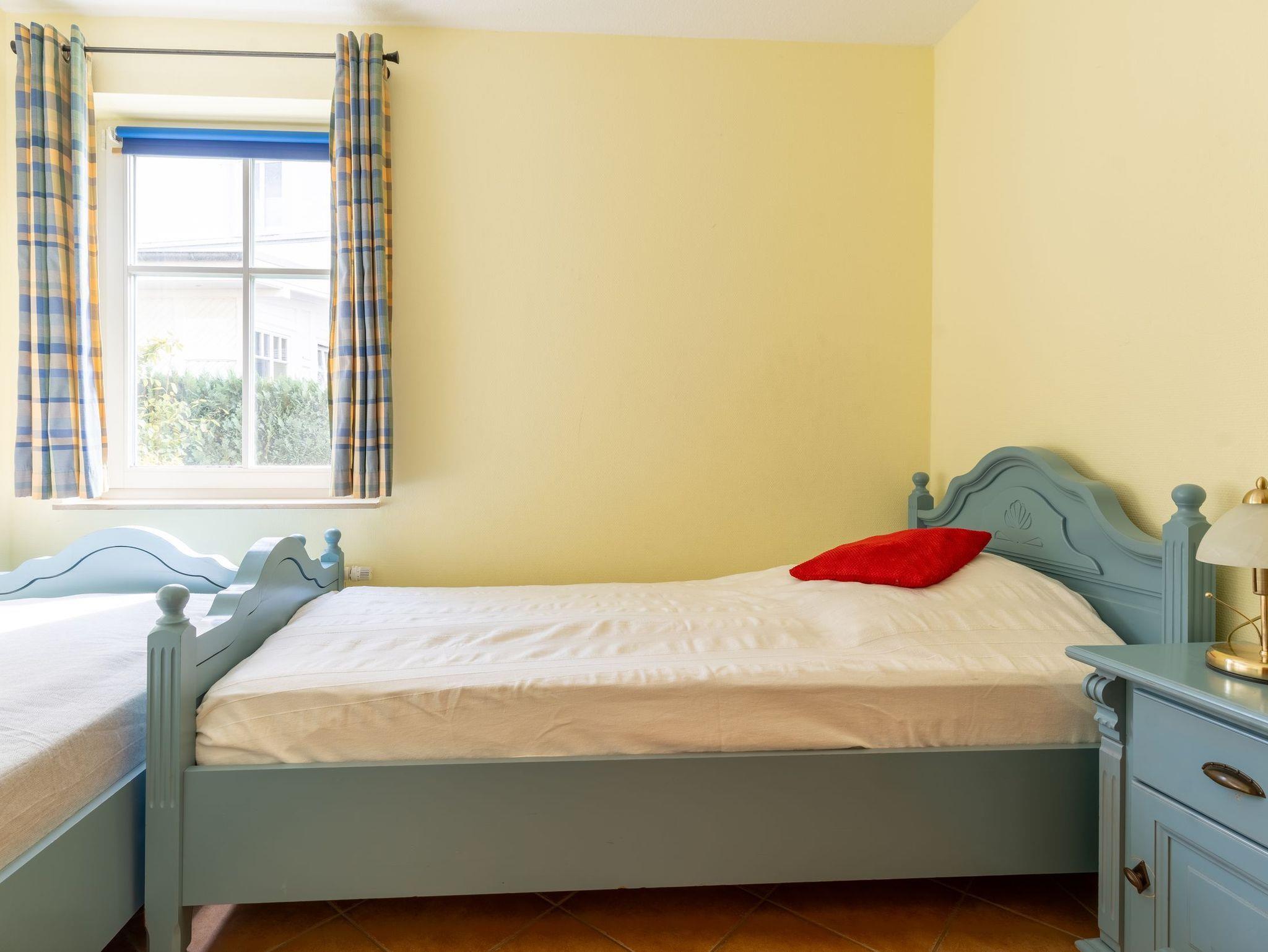 Das größere von beiden Schlafzimmern ist mit einem Doppelbett (180 x 200) ausgestattet, im kleineren Schlafzimmer befinden sich zwei Einzelbetten (100 x 200).