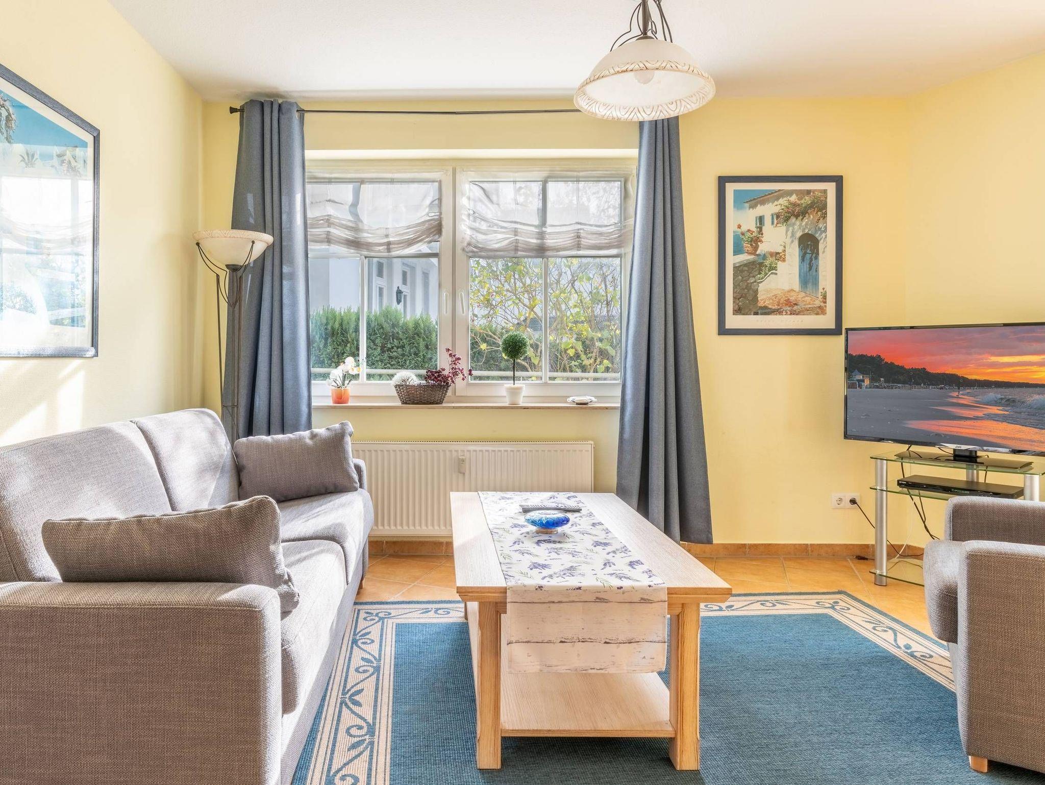 Moderne Ferienwohnung in zentraler Lage nahe Binzer Strand und Schmachter See mit WLAN, Terrasse und persönlichem Strandkorb.