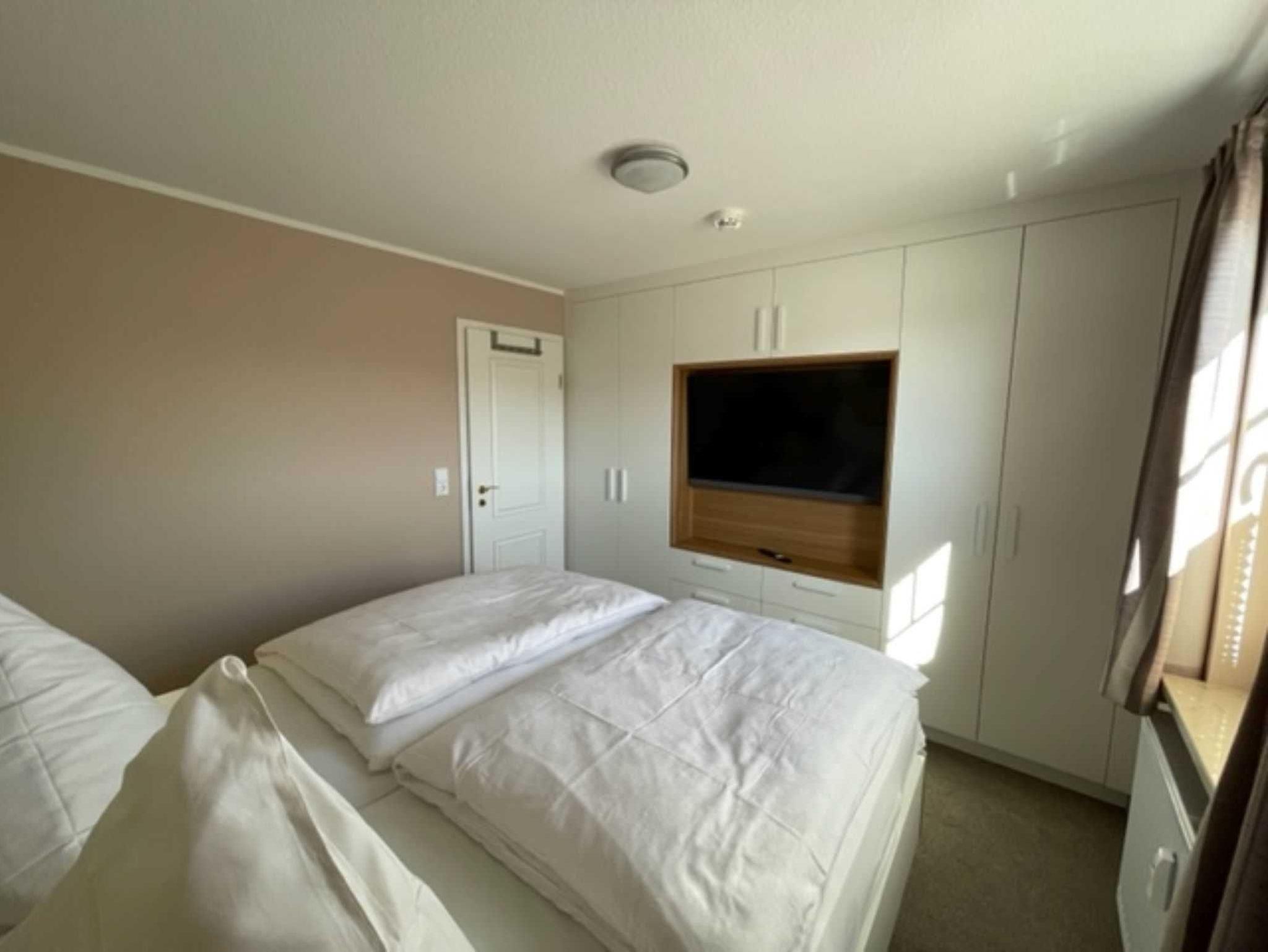 Im 1. Schlafzimmer erwarten Sie ein bequemes Doppelbett mit Nachttischen und Leselampen sowie ein Kleiderschrank. Das 2. Schlafzimmer ist mit einem Doppelbett und einem Flachbild-TV ausgestattet. Vom Wohnraum aus gelangt man auf den schönen Balkon mit Sitzgelegenheiten. Gegen Aufpreis liegen bei Ihrer Anreise frische Handtücher und Bettwäsche bereit. Selbstverständlich können Sie auch Ihre Bettwäsche und Ihre Handtücher mitbringen. Der 5. und 6. Gast schläft auf der Schlafcouch im Wohnzimmer. Die beiden modernen Bäder sind mit Dusche bzw. Wanne und WC ausgestattet und verfügen über Tageslicht. Für unsere Gäste ist eine Strandkorbnutzung von Mai bis September inkl. möglich!