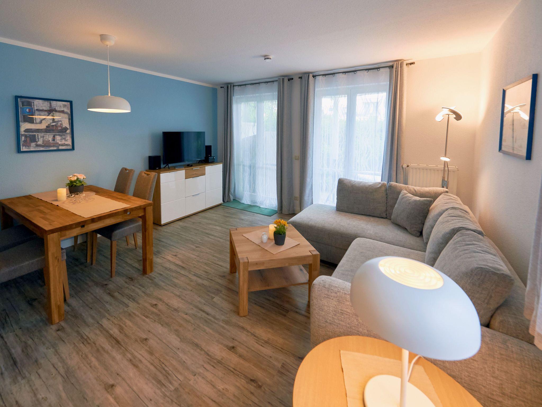 Dieses modern und behaglich eingerichtete 2-Raum-Appartement erwartet Sie im Erdgeschoss (Hochparterre) von Haus 8 im Wohnpark. Es verfügt über eine Wohnfläche von ca. 46 m² und hat eine schöne möblierte Terrasse zur sonnigen Südseite. In der warmen Jahreszeit steht Ihnen hier sogar ein Strandkorb zur Verfügung, in dem es sich herrlich einkuscheln und die Sonne genießen lässt.