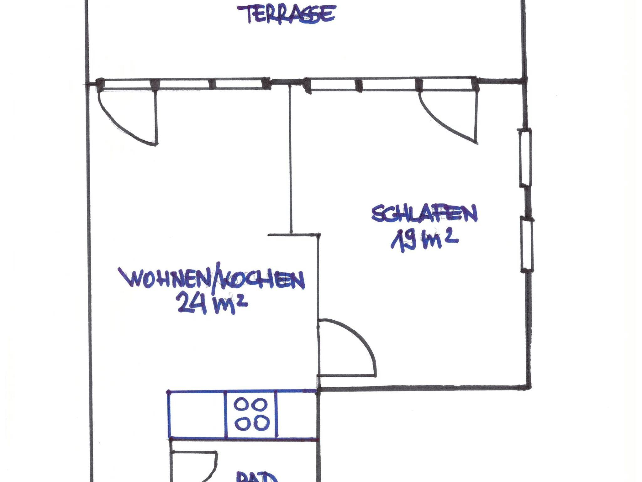 Durch die großen Terrassenfenster zur Seeseite mit Gartenblick ist die 47 qm große Wohnung hell und freundlich. Das Schlafzimmer (Doppelbett 1,80 m x 2,00 m) und der kombinierte Wohn- und Essbereich mit Küchenzeile bieten viel Platz. Das Bad wurde komplett neu renoviert.