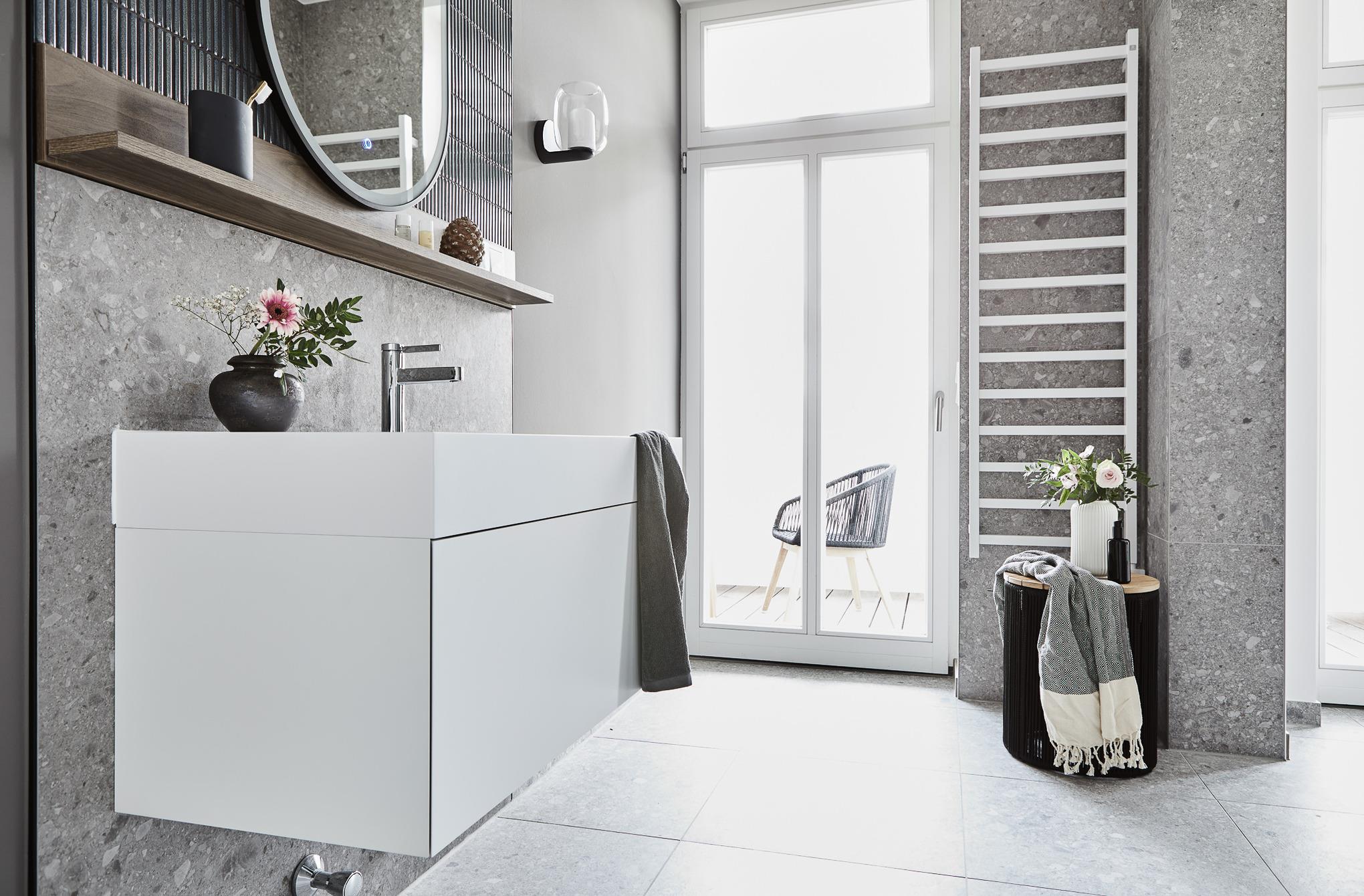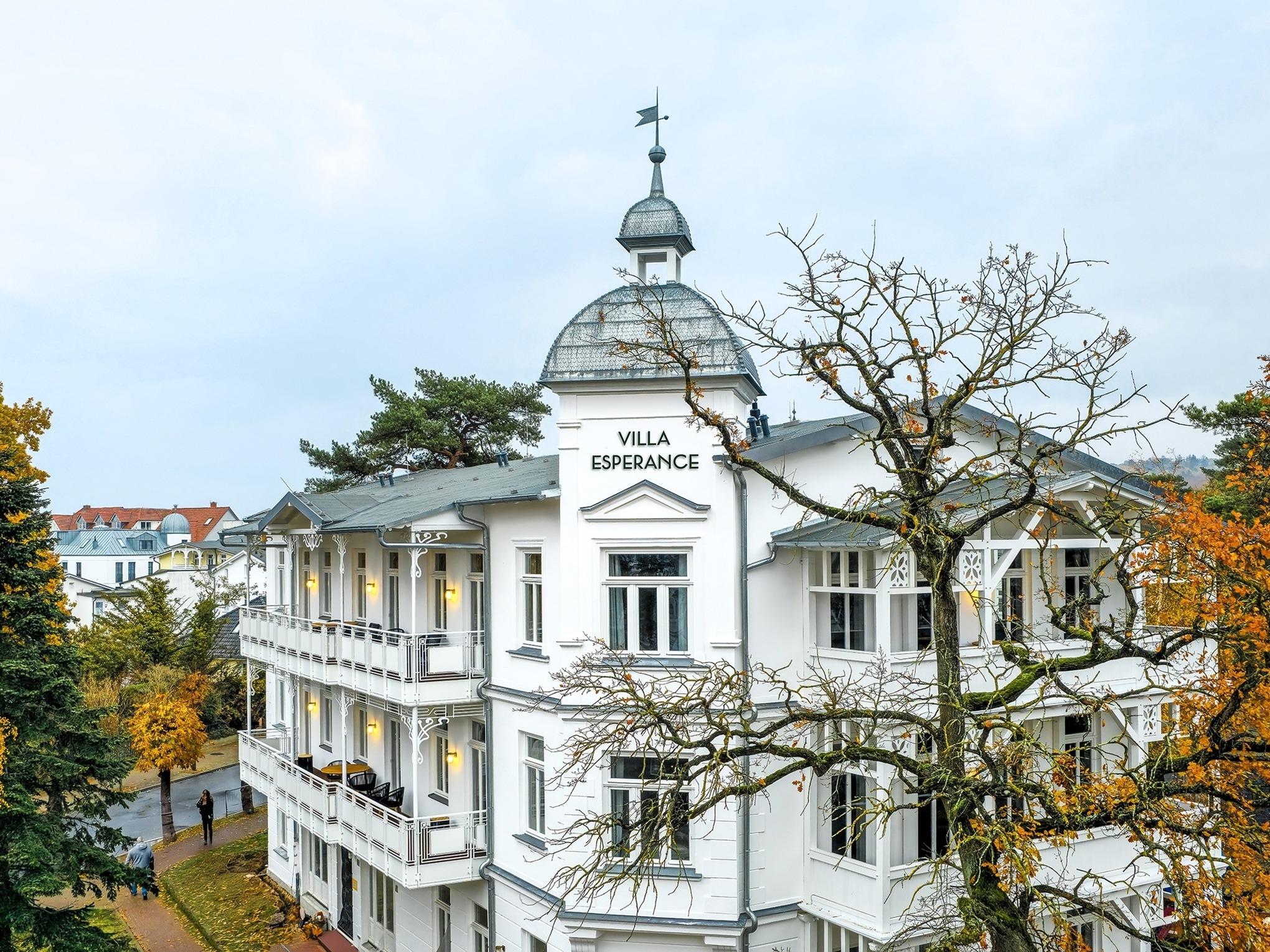 Moderne Master Wellness Suite mit Balkon und Dampfbad in Binz, nur 100 m vom Strand entfernt, ideal für erholsame Tage.