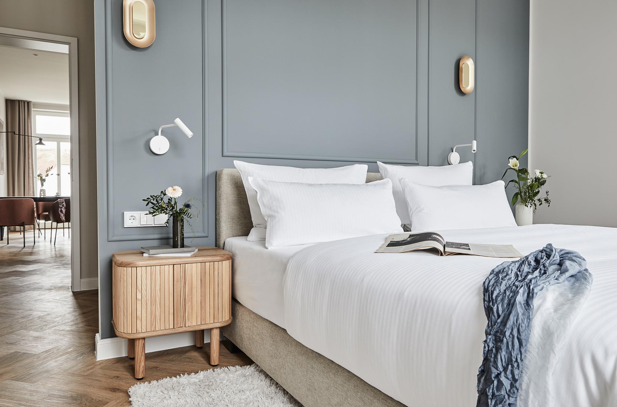 Die Master Wellness Suite mit Balkon und Dampfbad befindet sich in der 1. Etage und verfügt über geräumige ca. 90 m2, über 2 Schlafzimmer und einen separaten Wohnraum, einer offenen Küchenzeile sowie 2 Badezimmer und 1 Dampfbad.
