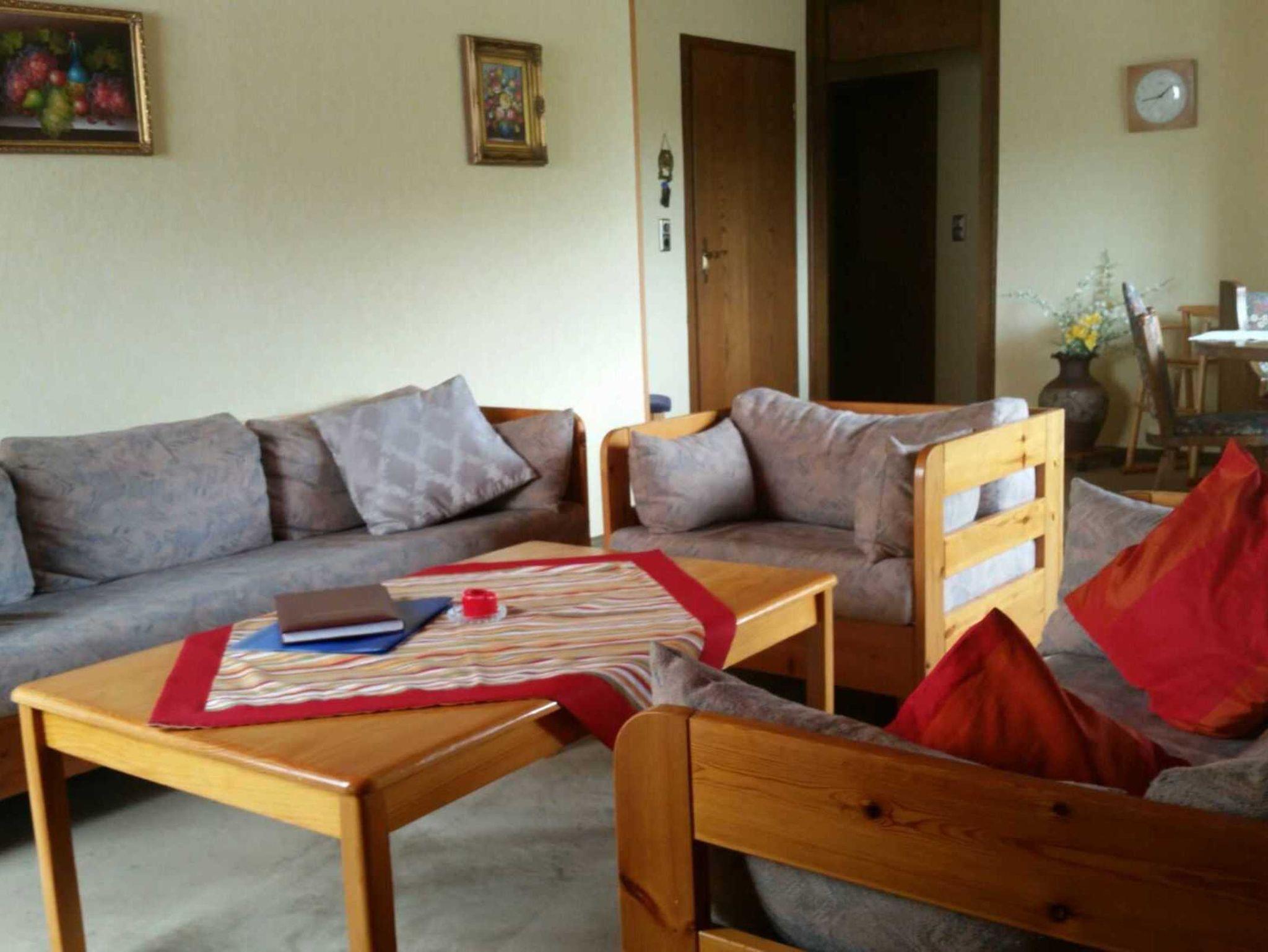 Die Ferienwohnung besteht aus zwei Schlafzimmern (kostenloses Kinderzustellbett nach Anfrage verfügbar), einer separaten Küche (Herd mit Ceranfeld, Backofen, Mikrowelle, Kaffeemaschine, Toaster und Wasserkocher) und einem großen Wohnzimmer mit Essecke und ausreichend Sitzmöglichkeiten.