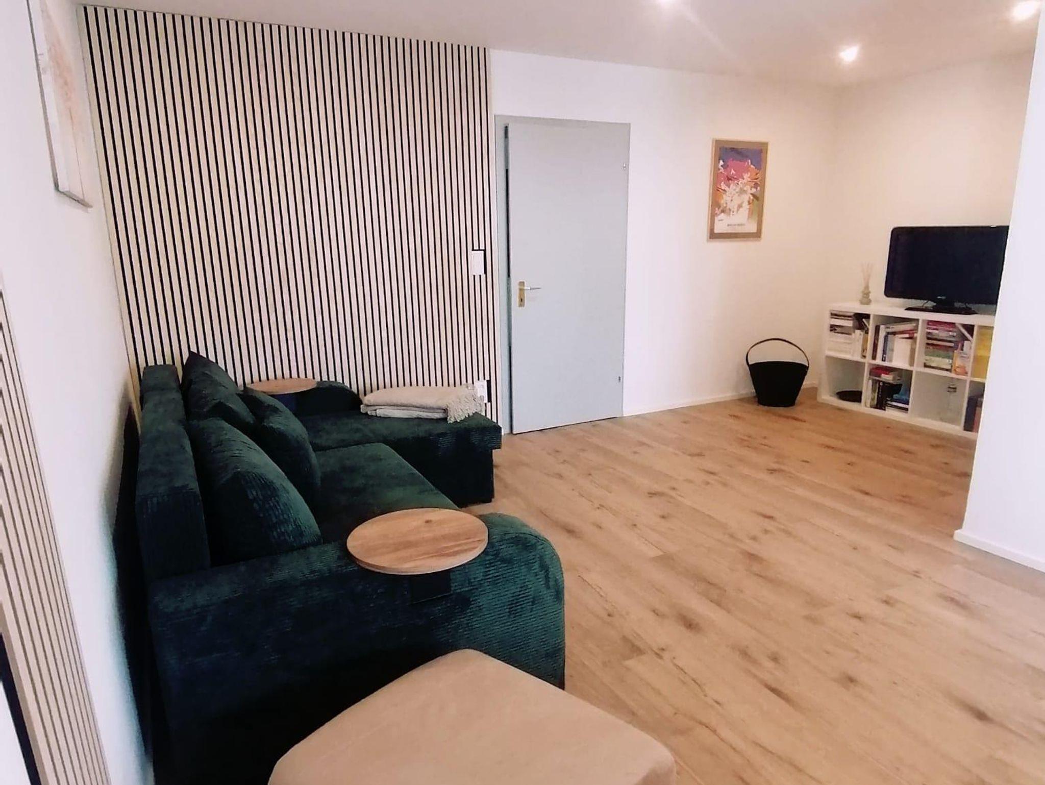 Entspannung findet ihr auf dem großen Sofa im Wohnzimmer. Hier könnt ihr die Füße hochlegen und einen Film bei Magenta TV schauen oder ein Buch aus unserer Buchsammlung lesen. Das Sofa ist ganz leicht ausziehbar und bietet für zwei weitere Personen Platz zum Schlafen.