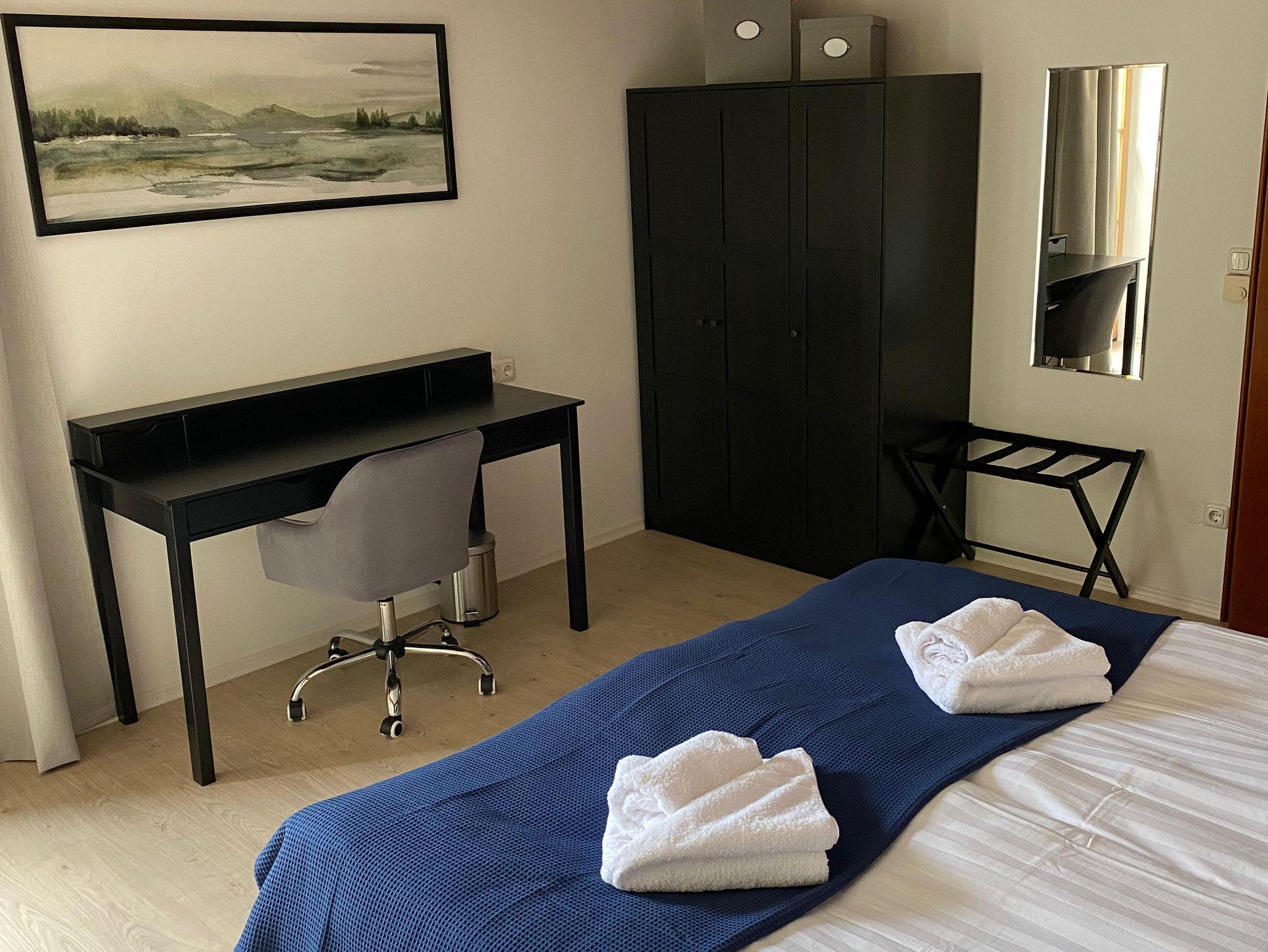 In unserer Wohnung findest Du drei einladend eingerichtete Schlafzimmer. Das erste Schlafzimmer hat ein großes Doppelbett (180 x 200 cm), perfekt, um Dich nach einem Tag voller Erlebnisse zu entspannen. Im zweiten Schlafzimmer wartet ein weiteres Doppelbett (160 x 200 cm) auf Dich, neben einem praktischen Etagenbett, das besonders bei Familien beliebt ist. Ein zusätzliches Etagenbett im dritten Zimmer bietet weiteren Platz, besonders für Kinder und deine Freunde.