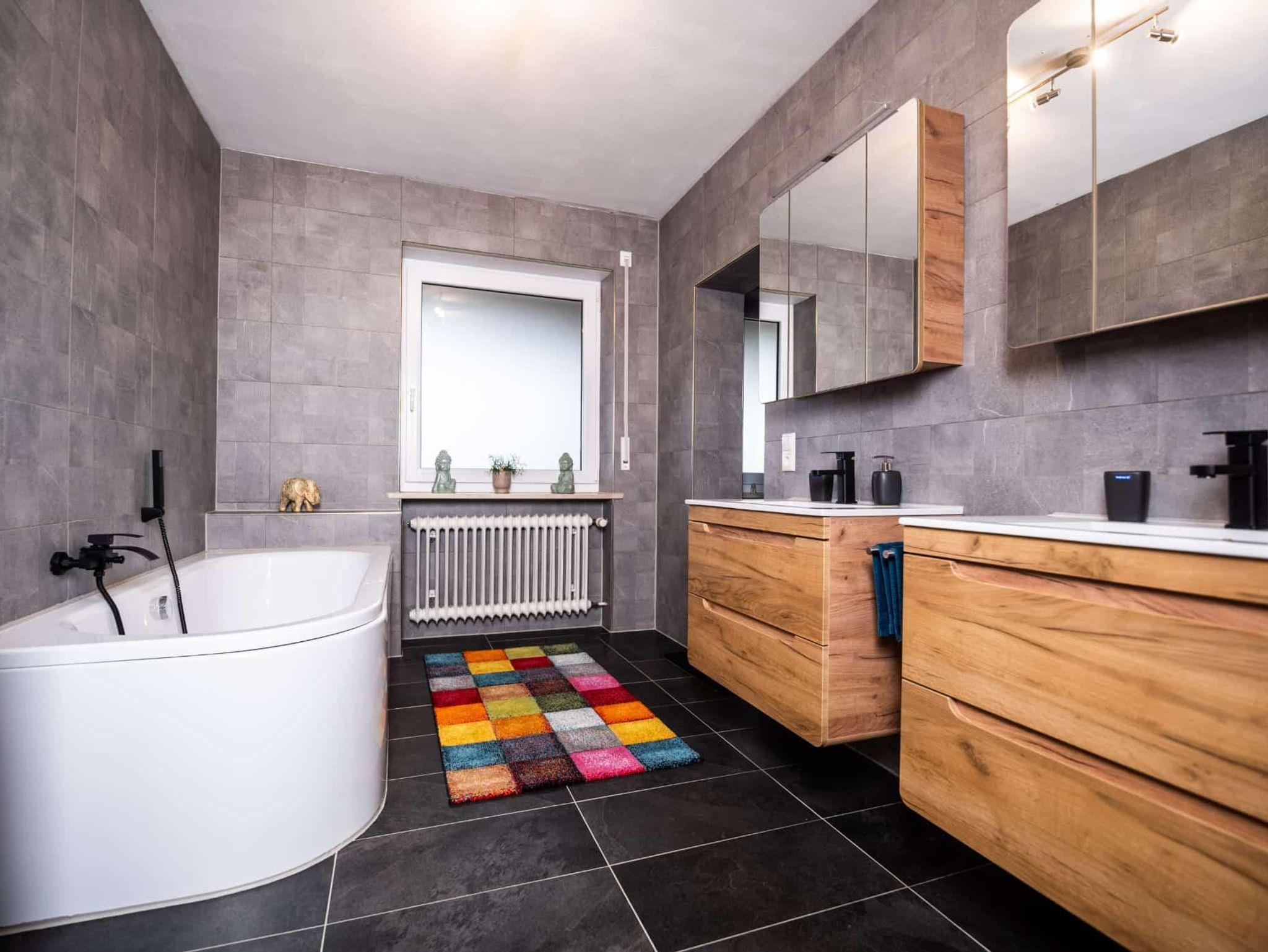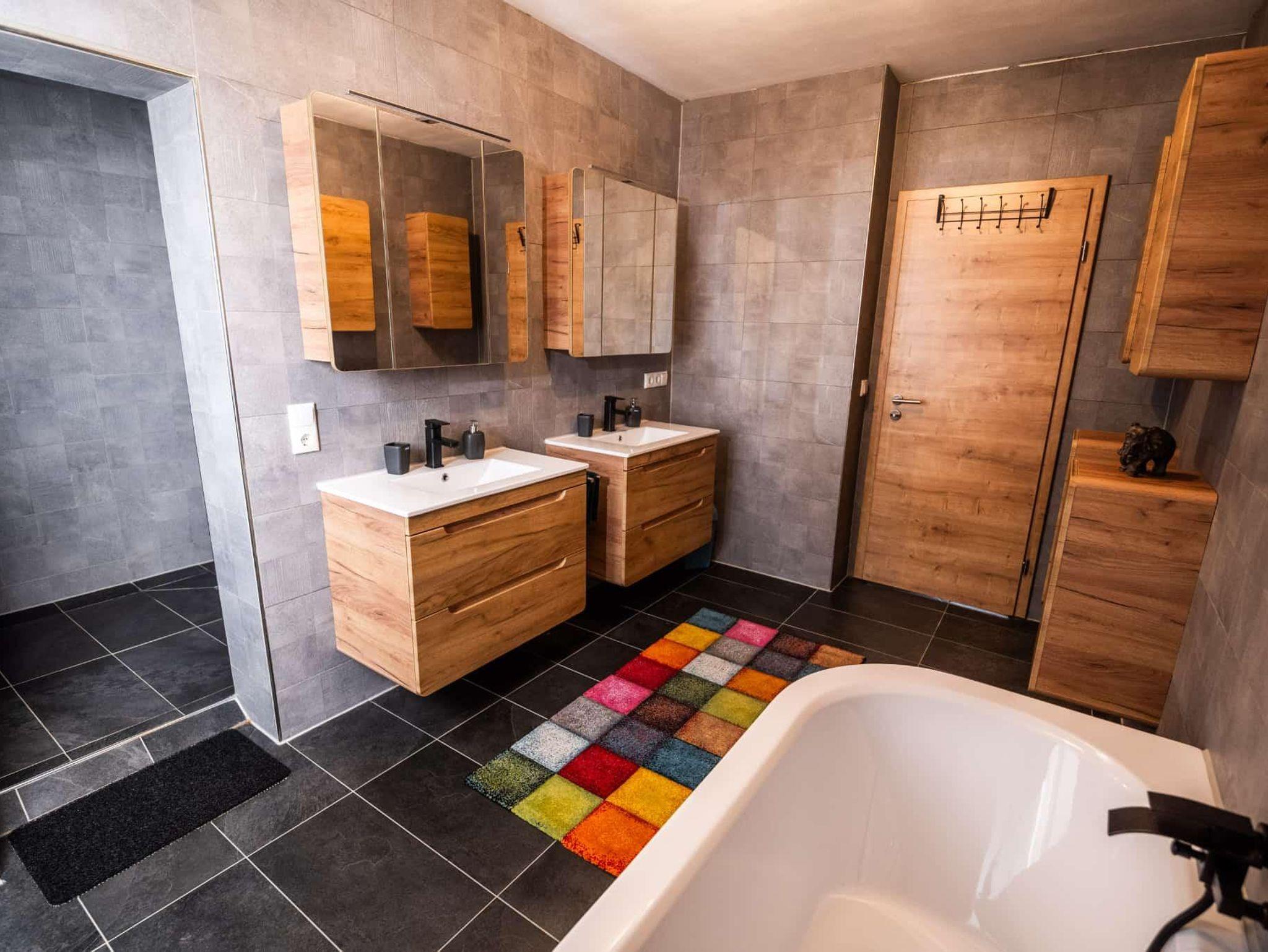 1 großes Bad mit großer begehbarer Dusche