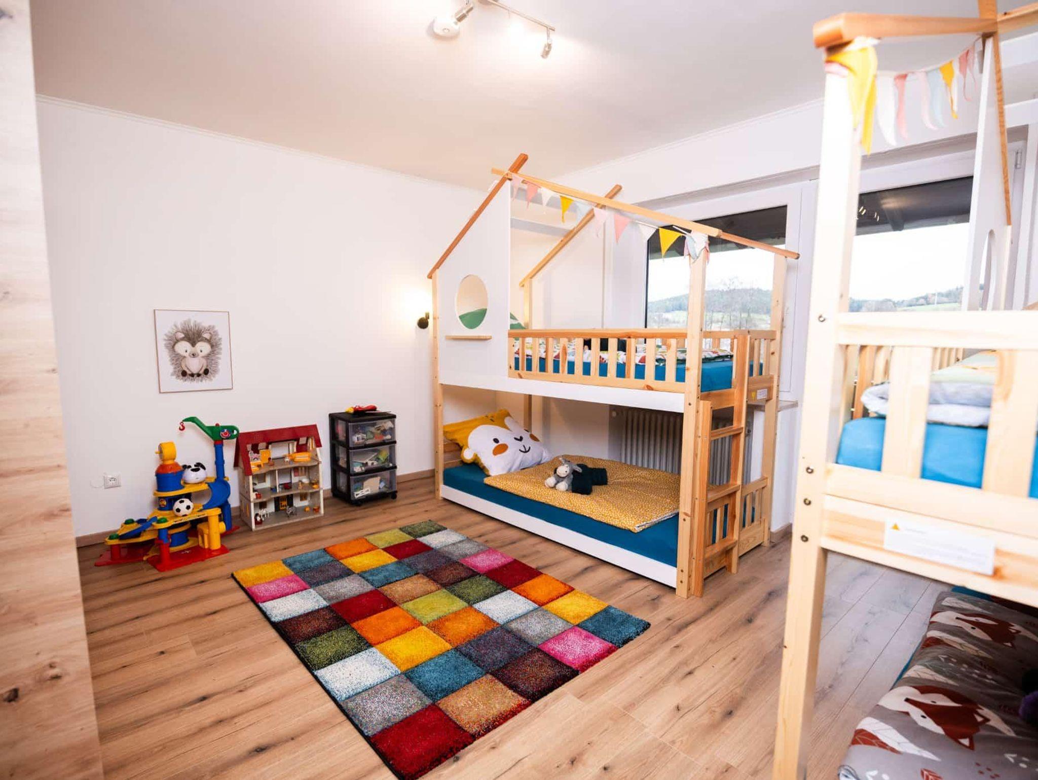 1 Schlafzimmer für 4 Kinder mit je 2 x Hochbett (Betten je 90 cm x 2 m)