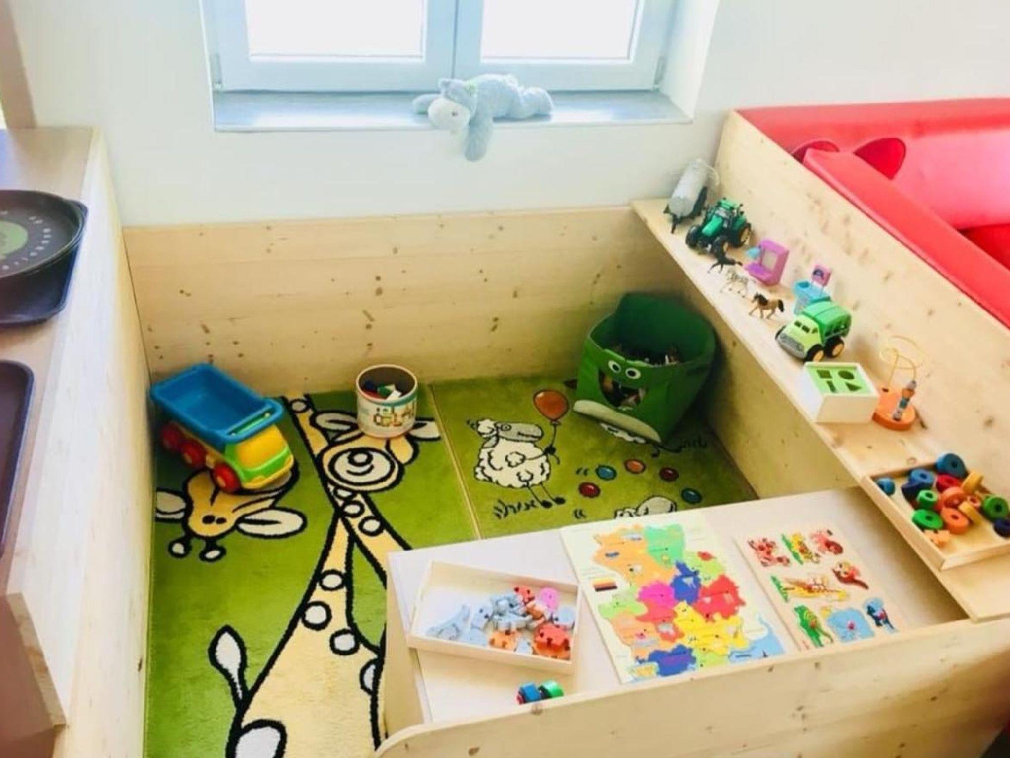 Für die Kinder sind viele Spielsachen vorhanden.