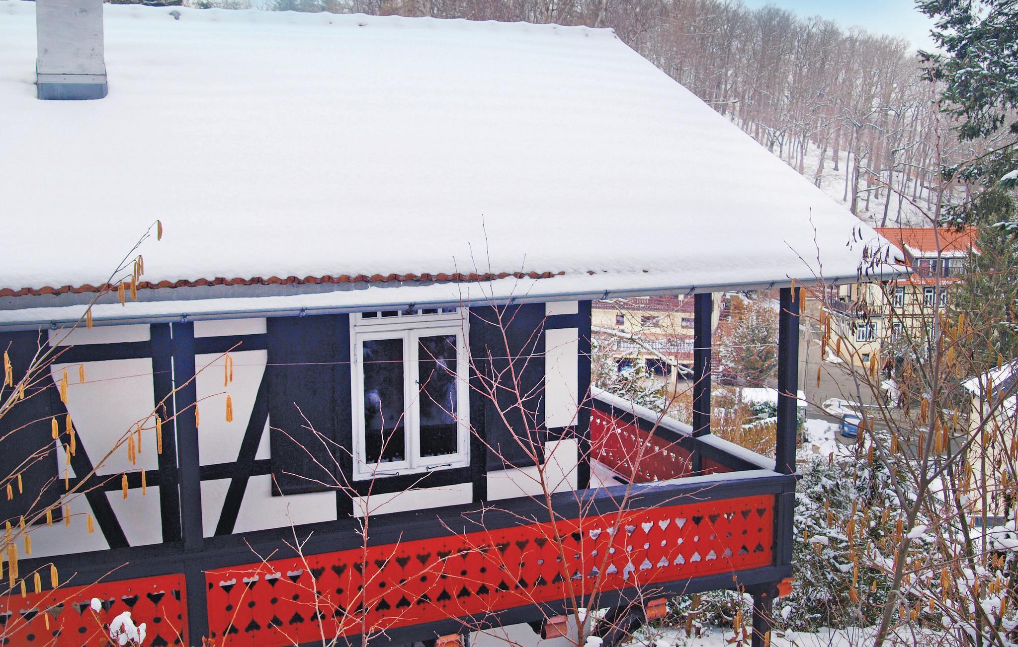 Ein über hundert Jahre altes Fachwerkhaus mit umlaufendem Balkon im Stil eines Schweizer Chalets. Die Unterkunft ist wohnlich und teilweise mit rustikalen Möbeln ausgestattet. Durch die Hanglage am Stadtrand haben Sie einen herrlichen Blick über Blankenburg und zum Schloss. Eine großzügige Raumaufteilung, hierunter auch eine beheizbare Veranda, sorgt für ausreichend Platz. Im größeren Schlafzimmer sind zwei der Schlafmöglichkeiten ausziehbare Rollbetten. Teilweise Dachschrägen im Obergeschoss.
