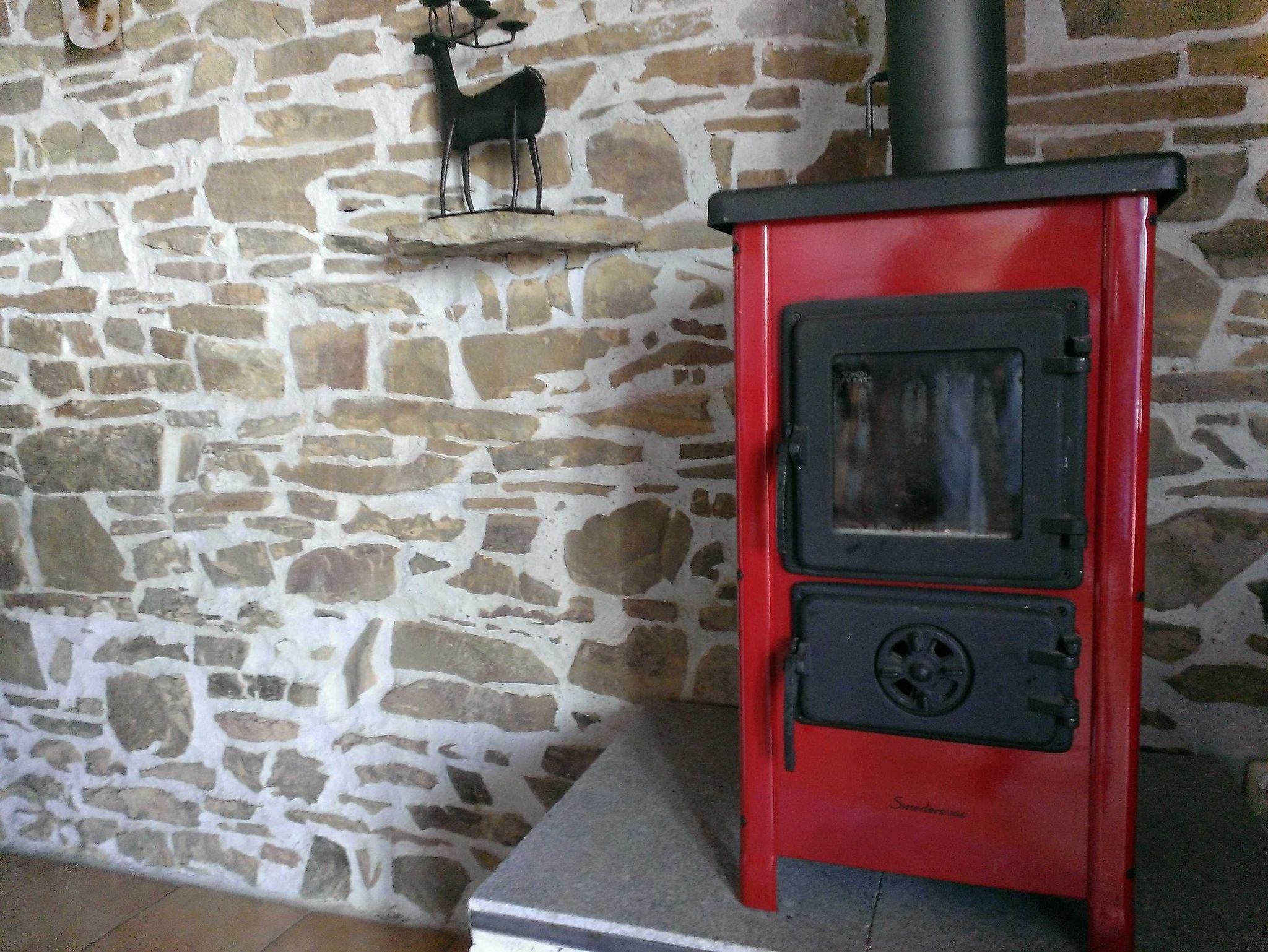 35 m² große Maisonette Wohnung über 2 Etagen mit Balkon, Bruchsteinwand, Kaminofen. Eingang mitten im Garten. Oben Wohn-Schlafbereich, Untere Etage großer Wohn-Essraum mit Ausgang zum Balkon. Gehobene Ausstattung. Küche hervorragend ausgerüstet.