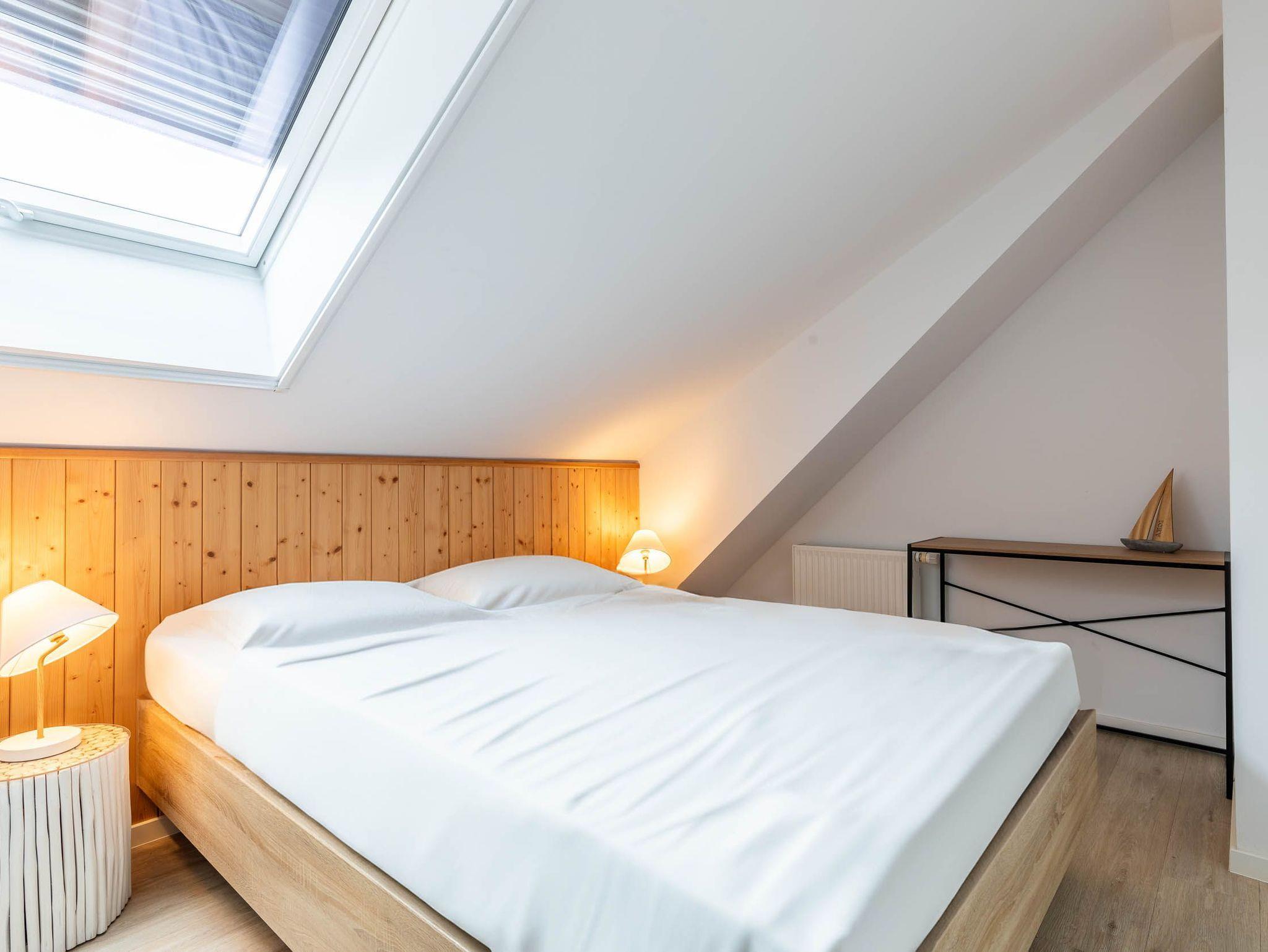 Weiterhin finden Sie auf dieser Wohnebene das erste der insgesamt 3 Schlafzimmer. Es bietet ein bequemes Doppelbett (160x200cm) und einen Kleiderschrank für Ihre Urlaubsgarderobe.