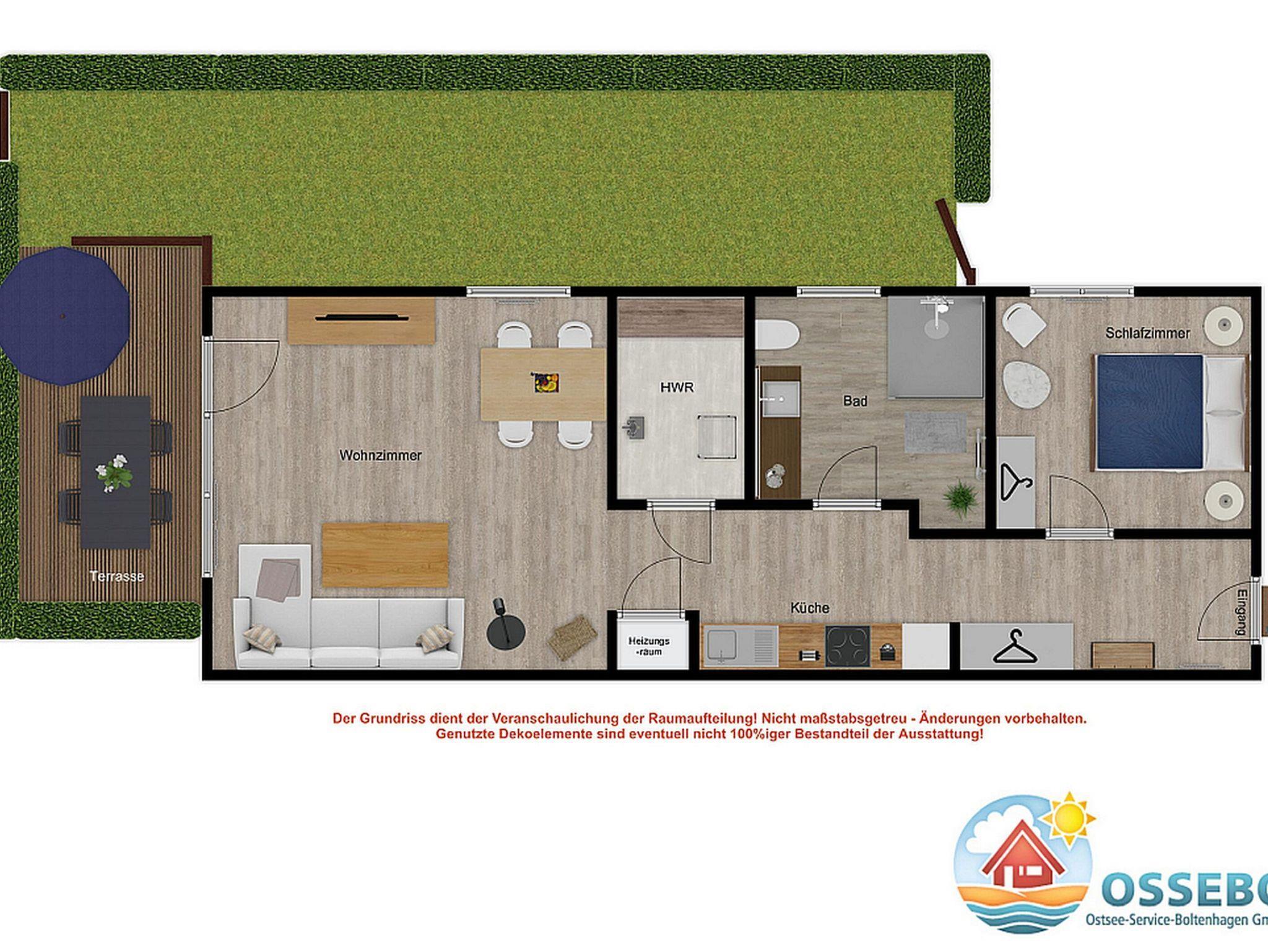 Die beliebte 2-Zimmer-Ferienwohnung befindet sich im Erdgeschoss eines Appartementhauses in der Ferienanlage Papillon im Ostseebad Boltenhagen und bietet auf rund 55qm Wohnfläche eine moderne Ausstattung für 2 Gäste.
