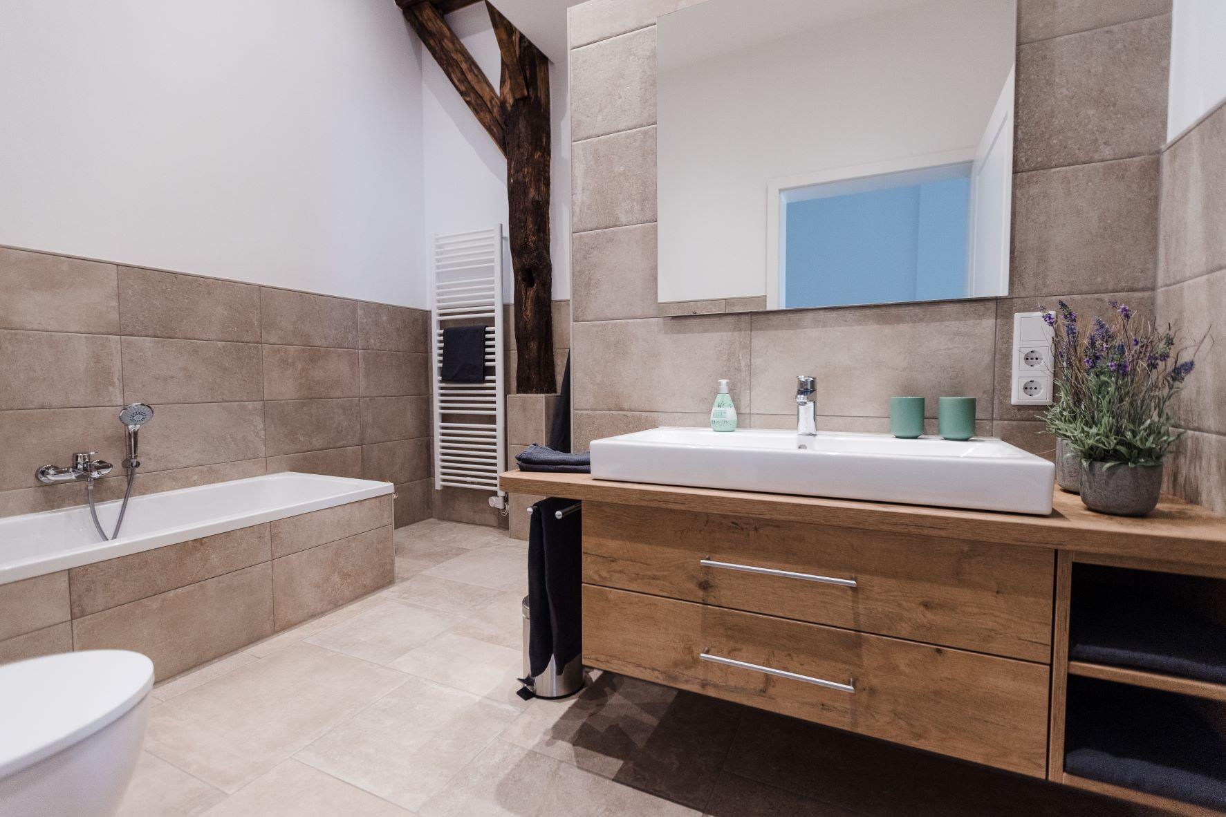 Der Mittelpunkt der Ferienwohnung ist ein lichtdurchfluteter Raum mit einem atemberaubenden Blick durch das wunderschöne "Tennentor", hohen Decken, alten Balken und hochwertiger Ausstattung. Sie gebendem Raum seinen ganz besonderen Charme. Großzügiger Wohn- und Essbereich mit 12 Sitzmöglichkeiten/Vollausgestattete Eventküche mit Gaskochfeld, Backofen, Dampfgarer u.v.m. Ein Badzimmer mit begehbarer Dusche und einer Duo-Badewanne. Zusätzlich ein Gäste-WC. Die Ferienwohnung Lichtblick kann zusammen mit der Ferienwohnung Weitblick gebucht werden und ermöglicht ein gemeinsames Beisammen sein.