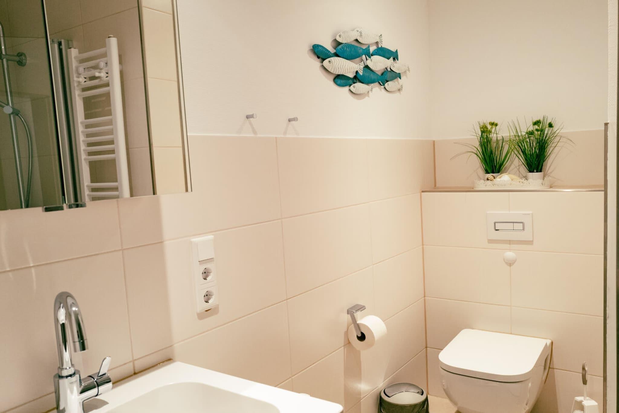 Gemütliche Ferienwohnung nahe Südstrand und Naturschutzgebiet Grüne Stee auf Borkum mit Frühstücksterrasse und Wellnessbad.