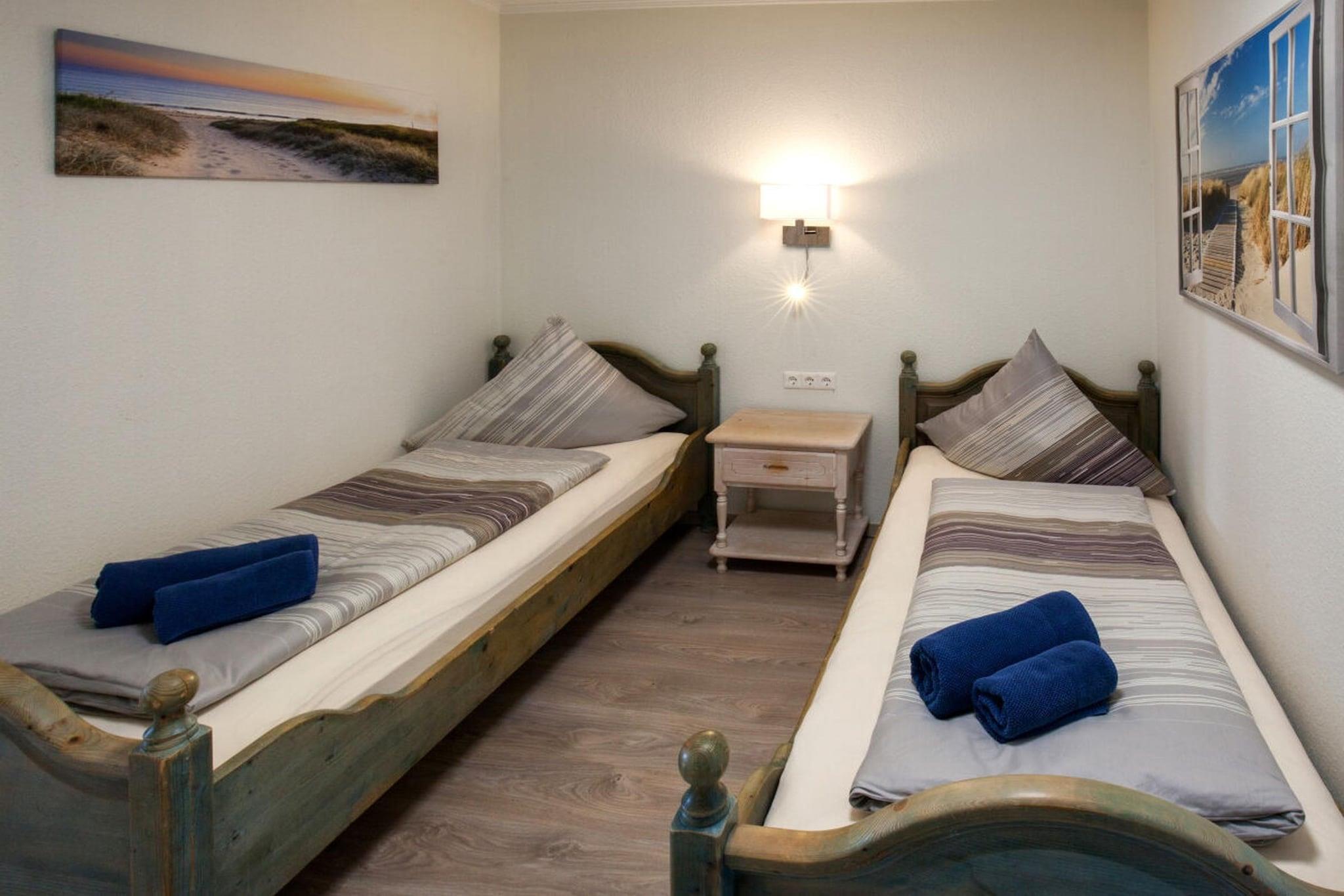Unsere Ferienwohnung im "Nordseegrill" liegt in der ersten Etage und ist für bis zu 6 Personen geeignet. Sie verfügt über ein ein Schlafzimmer mit Doppelbett und ein Schlafzimmer mit 2 Einzelbetten, sowie einem großen Wohn- Schlafraum. Die Ferienwohnung hat eine 35m² Terrasse. Im gleichen Haus bieten wir 3 weitere Ferienwohnungen an. Bettwäsche, Dusch- und Handtücher sowie Geschirrhandtücher werden kostenlos zur Verfügung gestellt.