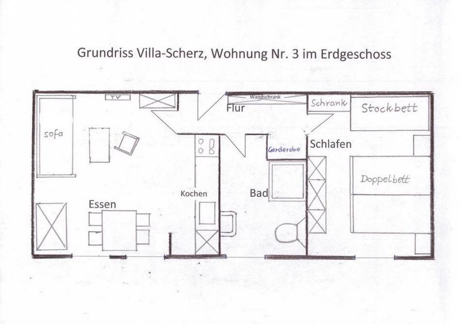 Die geräumige Ferienwohnung verfügt über eine moderne Ausstattung, die den Gästen einen komfortablen Aufenthalt garantiert. Die Küchenzeile ist mit einem Geschirrspüler, einem Elektro-/Gasherd, einem Backofen, einem Kühlschrank, einer Kaffeemaschine und einer Gefriermöglichkeit ausgestattet. Das Duschbad bietet ausreichend Platz und Komfort. Im Wohnzimmer steht ein TV zur Unterhaltung bereit. Darüber hinaus können Gäste die Waschmaschine und den Wäschetrockner nutzen. Geschirr und Besteck sind ebenfalls vorhanden. Die Ferienwohnung verfügt über eine funktionierende Heizung, um auch an kühleren Tagen für angenehme Wärme zu sorgen. Internet wird über LAN-Kabel bereitgestellt. Insgesamt bietet die Wohnung Platz für bis zu 4 Personen und verfügt über 1 Badezimmer. Entspannen Sie sich in dieser einladenden Ferienwohnung und genießen Sie Ihren Aufenthalt in vollen Zügen.