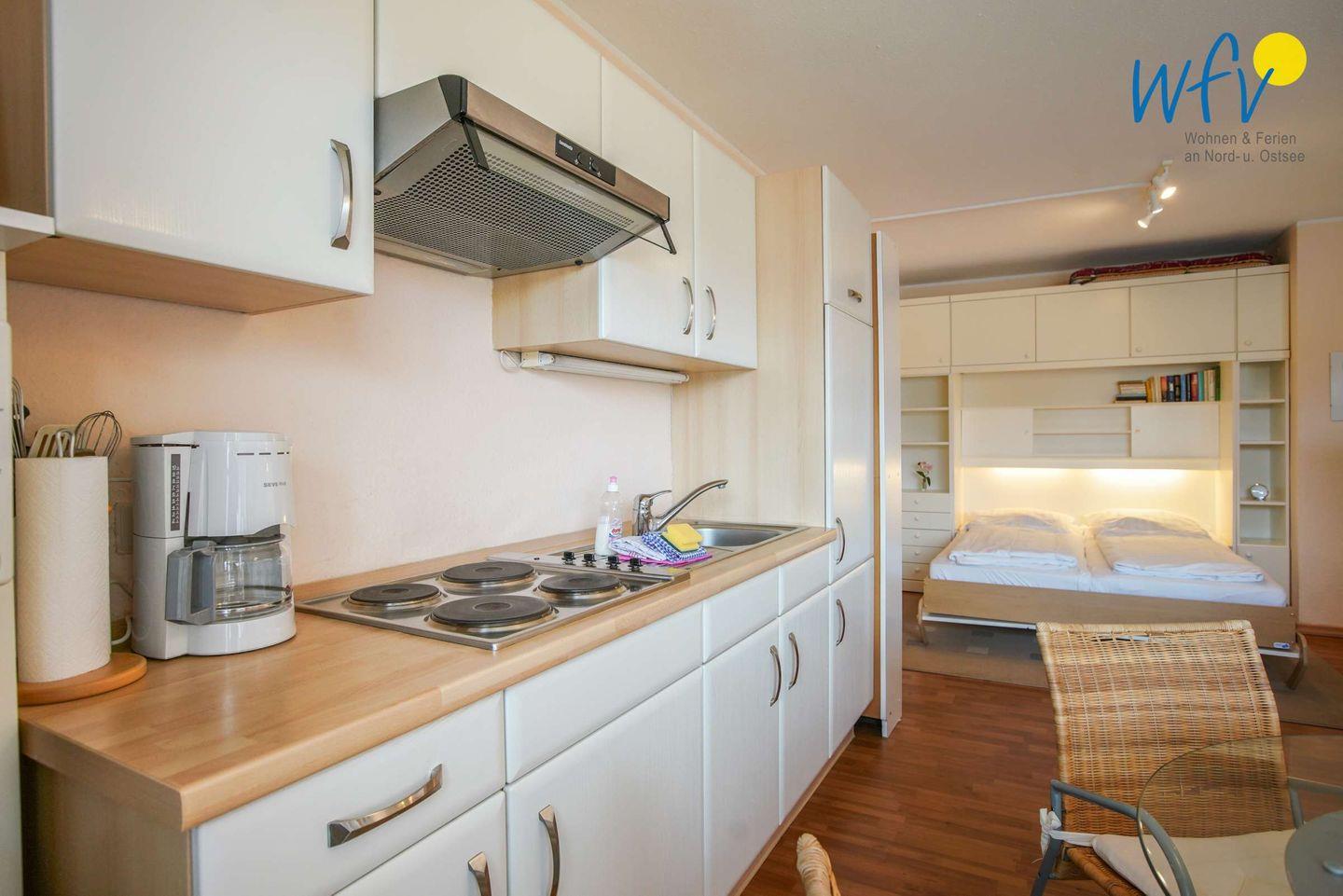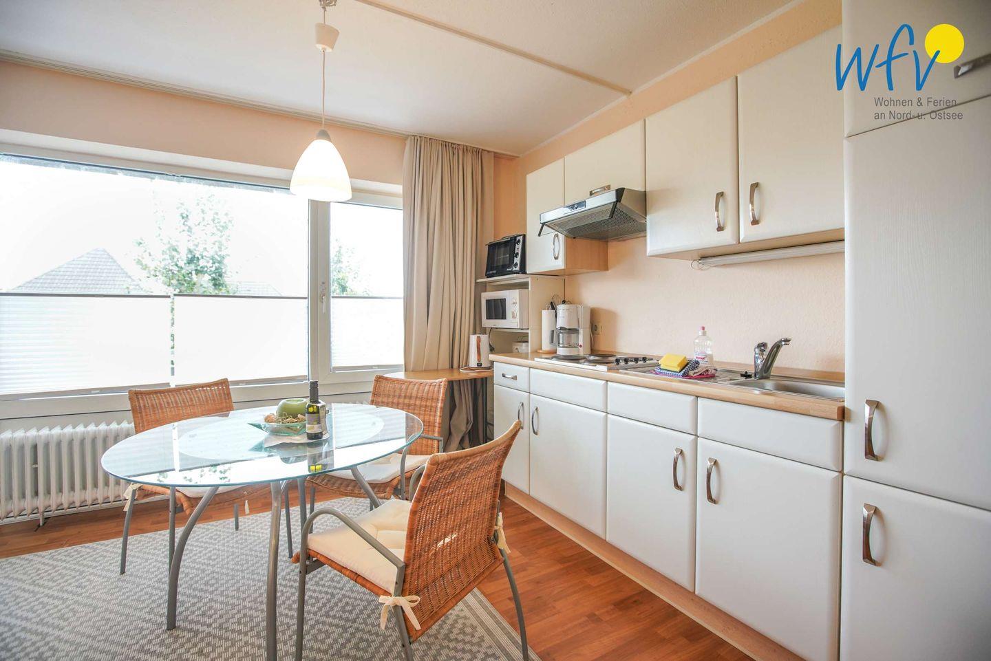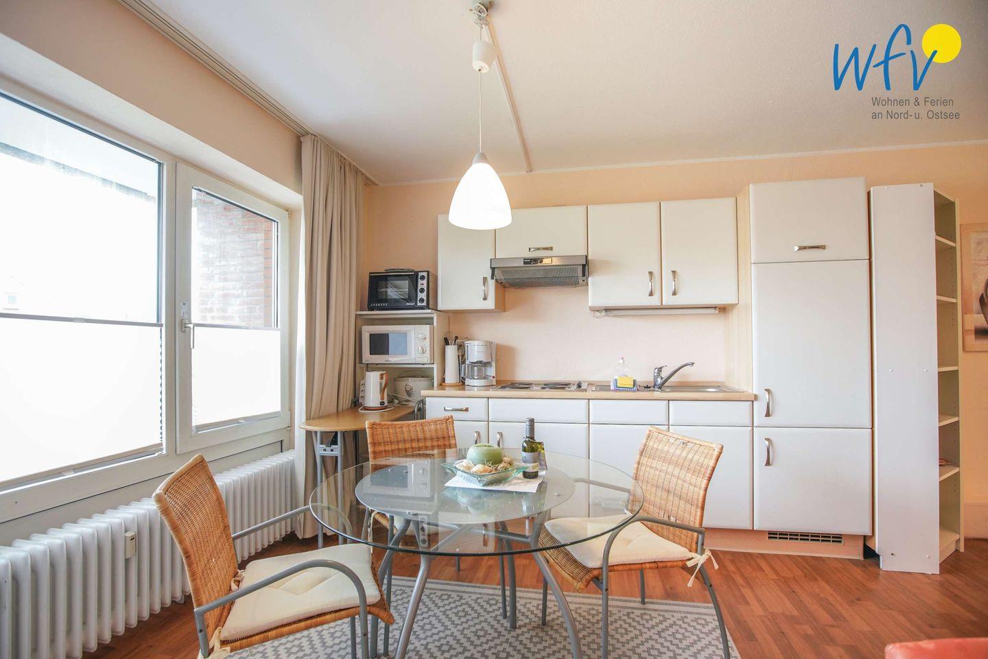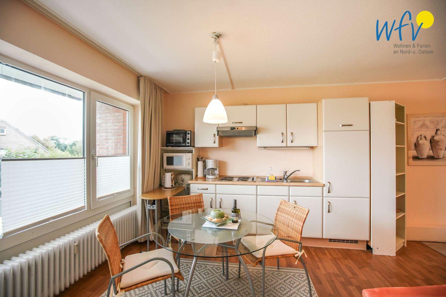 Damit Sie sich in Ihrem Urlaub auf Borkum bequem selbst verpflegen können, verfügt die Ferienwohnung über eine gut ausgestattete Küchenzeile - u.a. mit einem 4-Plattenherd, einem kleinen Backofen, einem Kühlschrank und einer Mikrowelle. Oder Sie lassen sich kulinarisch verwöhnen: auf Borkum finden Sie zahlreiche Restaurants, die Ihnen eine köstliche Nordseeküche servieren!