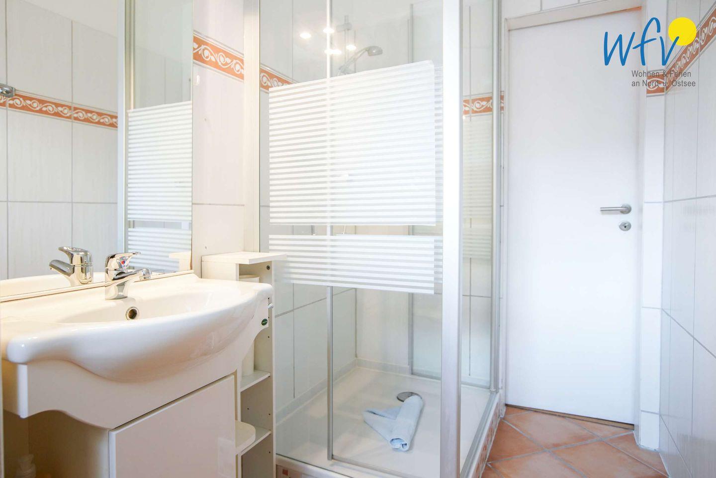 Das moderne Tageslichtbad verfügt über eine Dusche. Für Ihre anfallende Wäsche stehen Ihnen hier eine Waschmaschine und ein Trockner zur Verfügung.