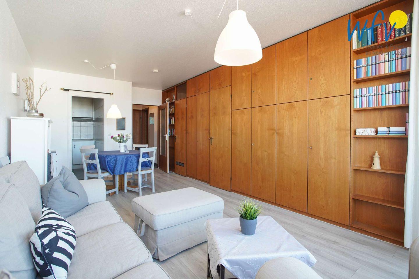 Gemütliche Ferienwohnung mit Balkon und Meerblick auf Borkum, ideal für Familien und strandnah gelegen.