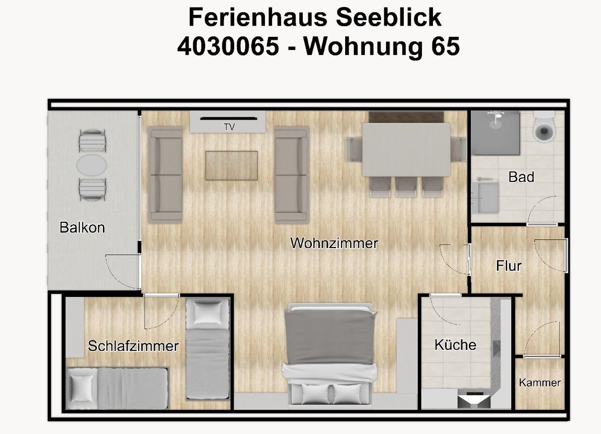 Durch ihre Lage im vierten Stock haben Sie von der Wohnung aus einen weiten Ausblick über einen großen Teil der Insel Borkum! Die Ferienwohnung verfügt über ein Wohn-/Schlafzimmer mit Couchecke und Essbereich sowie über ein separates Schlafzimmer, eine offene Küche, ein Duschbad, einen Abstellraum und einen Balkon.