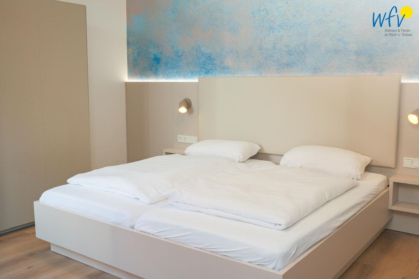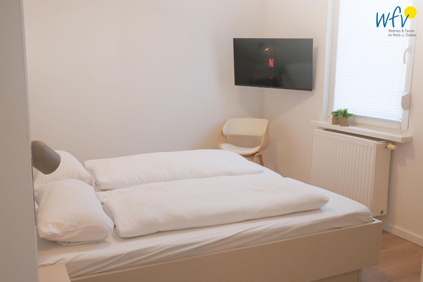 Ausruhen, erholen und entspannen... genau das ist Urlaub! Zwei separate Schlafzimmer versprechen eine angenehme Nachtruhe. Beide sind mit jeweils einem Doppelbett ausgestattet (200 x 200 cm bzw. 180 x 200 cm) sowie mit einem geräumigen Kleiderschrank und einem modernen SmartTV. Die Schlafcouch im Wohnraum kann bequem zu einem Bett umfunktioniert werden (140 x 200 cm) und ist für einen Erwachsenen und ein Kind oder zwei Kinder geeignet.