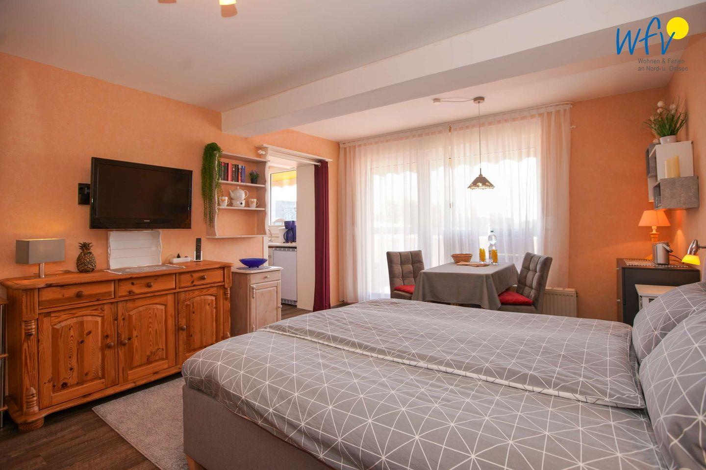 Ob nach dem Badetag, der Fahrradtour oder dem Strandspaziergang - an dem schönen Essplatz am Fenster oder auf dem Bett vor dem TV (80 cm) können Sie rundum entspannen. Zum Surfen vom Smartphone aus empfangen Sie kostenlos freies WLAN.