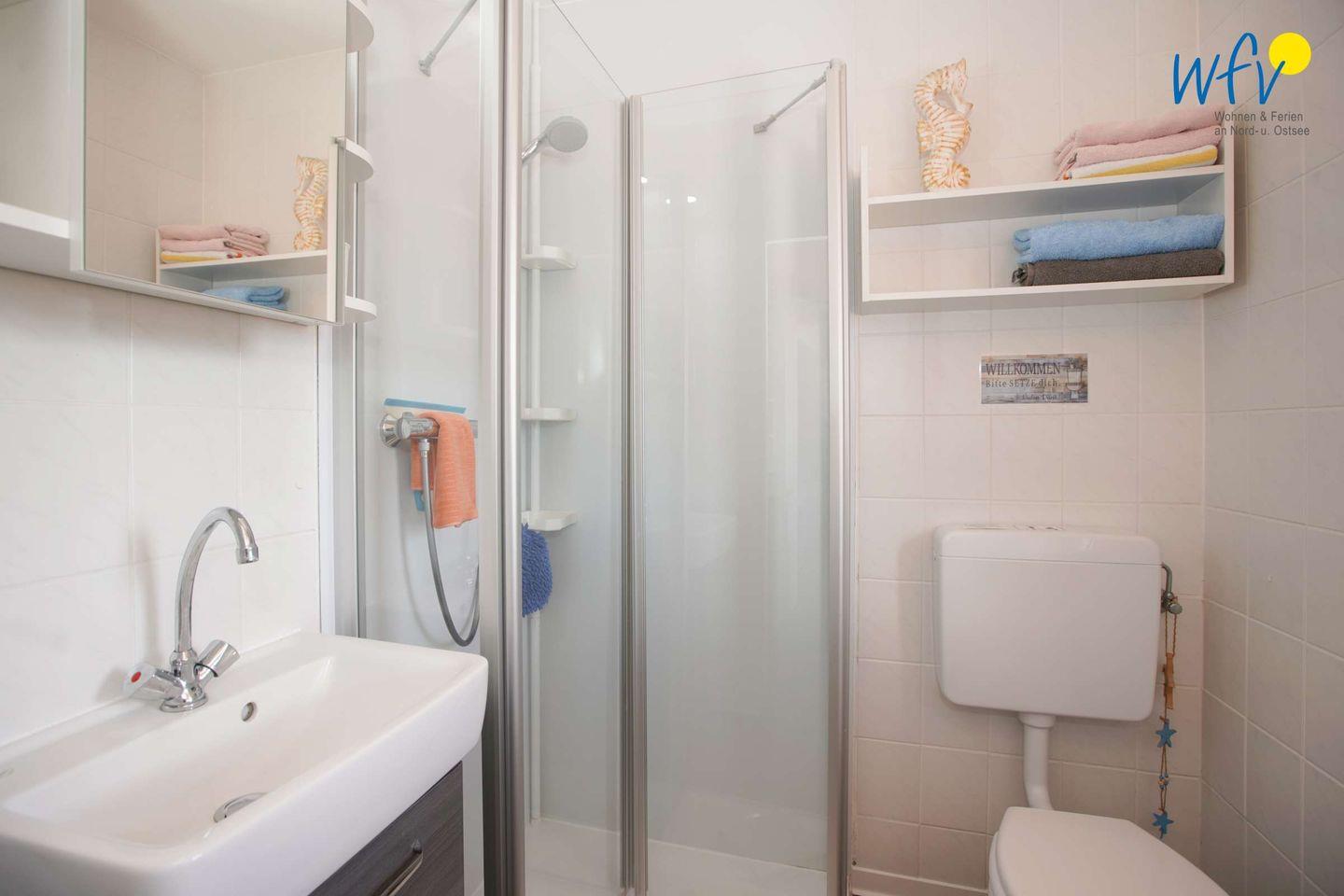 Das gepflegte Duschbad ergänzt den angenehmen Wohnkomfort.