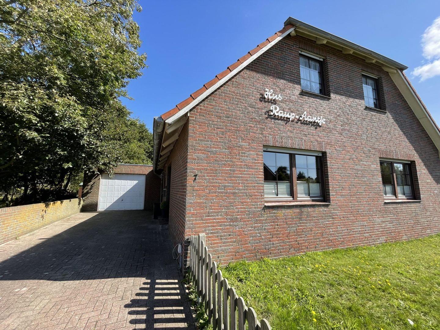 Gemütliche Ferienwohnung Hus Raup-Aantje in Borkum, 400 m vom Strand, mit Terrasse, Gartenblick und WLAN für erholsame Nordseeferien.