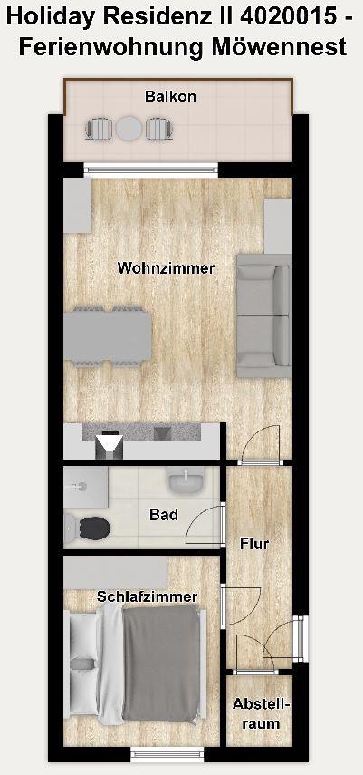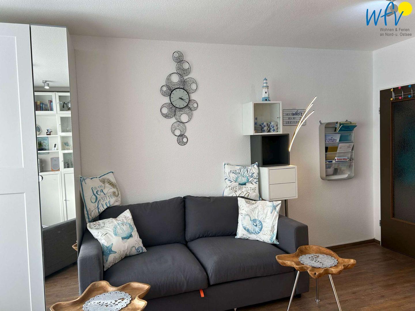 Ahoi und herzlichen willkommen in unserer Ferienwohnung "Möwennest"! Mit einem gemütlichem Wohnraum, separatem Schlafzimmer und sonnigem Balkon ist sie ideal für Ihren Familienurlaub.