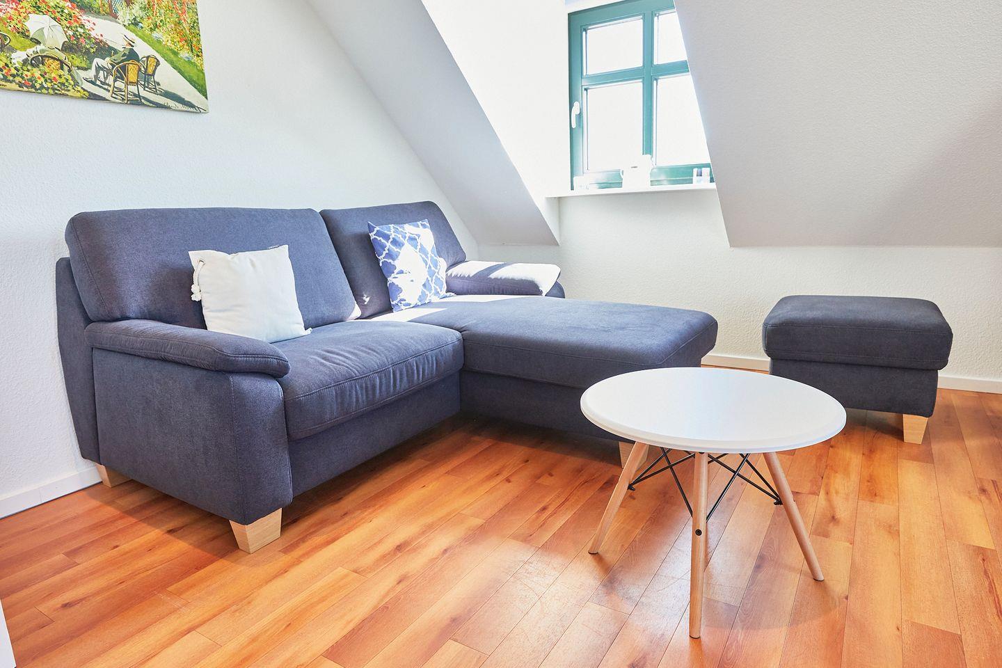 Die Wohnung Klein-Wiebke befindet sich im Dachgeschoss des Hauptgebäudes der Villa Wilhelmine und ist für 2 Personen sehr gut geeignet. Sie verfügt über ein Schlafzimmer mit einem Doppelbett, einem Wohnzimmer mit integrierter, komplett eingerichteter Küche sowie einem Bad mit Dusche und WC. Im Haus befindet sich auch eine Gemeinschaftssauna, die gegen Gebühr genutzt werden kann.