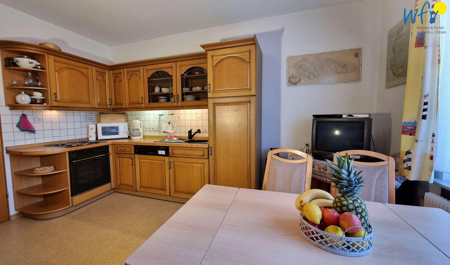 Am Essplatz mit schönem Blick nach draußen starten Sie ruhig und entspannt in den Urlaubstag. Kaffee, Brötchen und gekochte Eier lassen sich bequem in der Küchenzeile mit 4-Plattenherd, Backofen, Mikrowelle und Spülmaschine etc. zubereiten. So können Sie gemütlich den bevorstehenden Urlaubstag auf Borkum planen - mit Fahrradtour, Strandspaziergang oder Badetag.