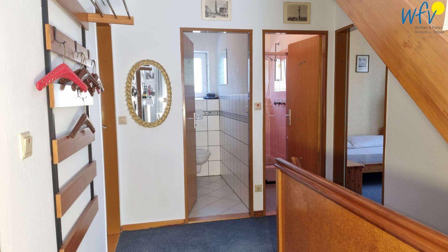 Allgemeine Hinweise: Waschmaschine und Trockner stehen Ihnen zur gemeinschaftlichen Nutzung zur Verfügung (gegen Gebühr; bitte nach Absprache). Im Garten finden Sie eine Wäscheleine (mit Klammern). Im Hof können Fahrräder, Bollerwagen und Sandspielzeug abgestellt werden. Die Ferienwohnung befindet sich im 1. OG und ist über eine Treppe zu erreichen. Es handelt sich um eine kleine Wohnung, die man mit einem Doppelzimmer und einem Einzelzimmer erweitern kann. Diese Schlafzimmer befinden sich auf der gleichen Etage außerhalb der Wohnung und sind über einen Übergangsflur erreichbar, der gemeinsam mit der oberen Wohnung genutzt wird.